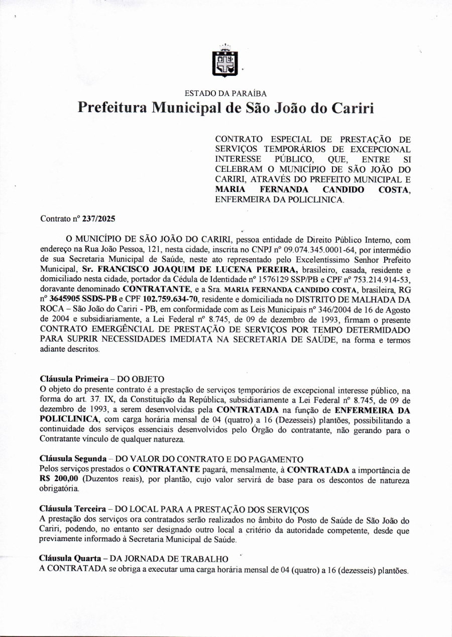 CONTRATO 237/2025 - MARIA FERNANDA CANDIDO COSTA