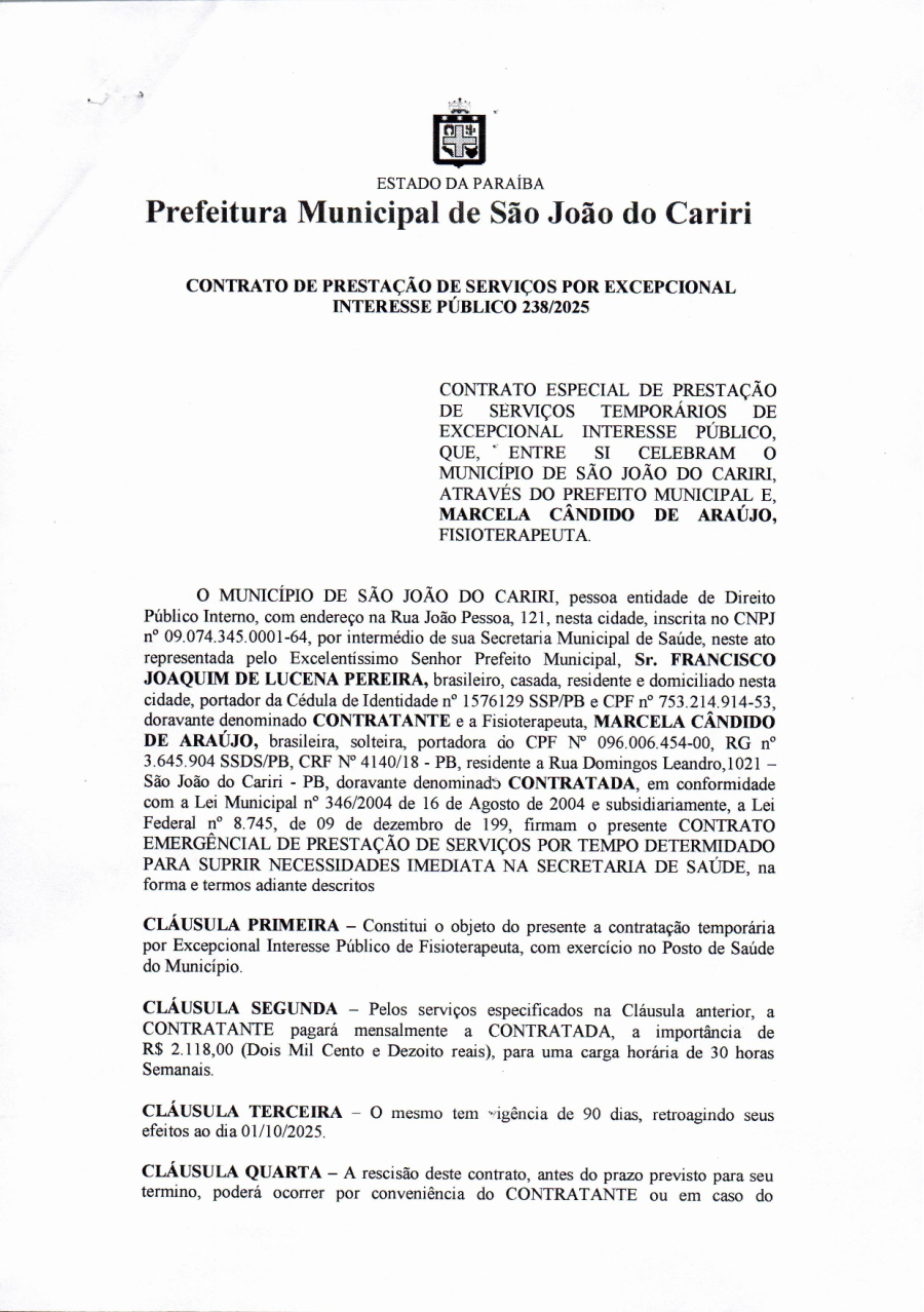 CONTRATO 238/2025 - MARCELA CANDIDO DE ARAUJO