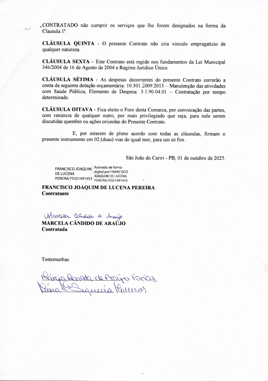 Conforme MP n° 2.200-2 de 24/08/2001, que institui a infraestrutura de chaves Públicas. Matéria Publicada no Diário Oficial do Município de São João do Cariri/PB no dia - Edição 01849.