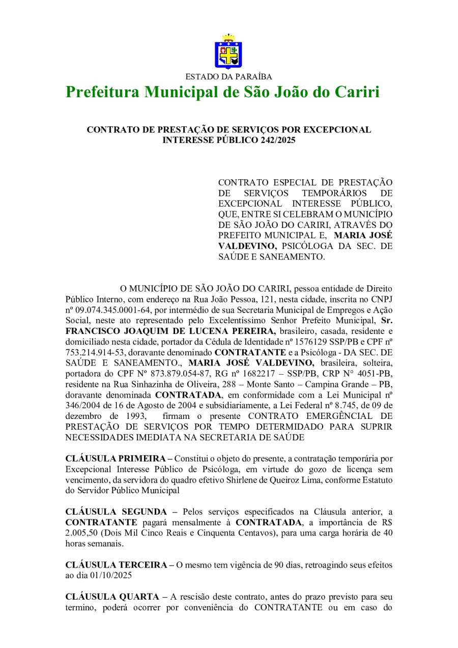 CONTRATO 242/2025 - MARIA JOSÉ VALDEVINO