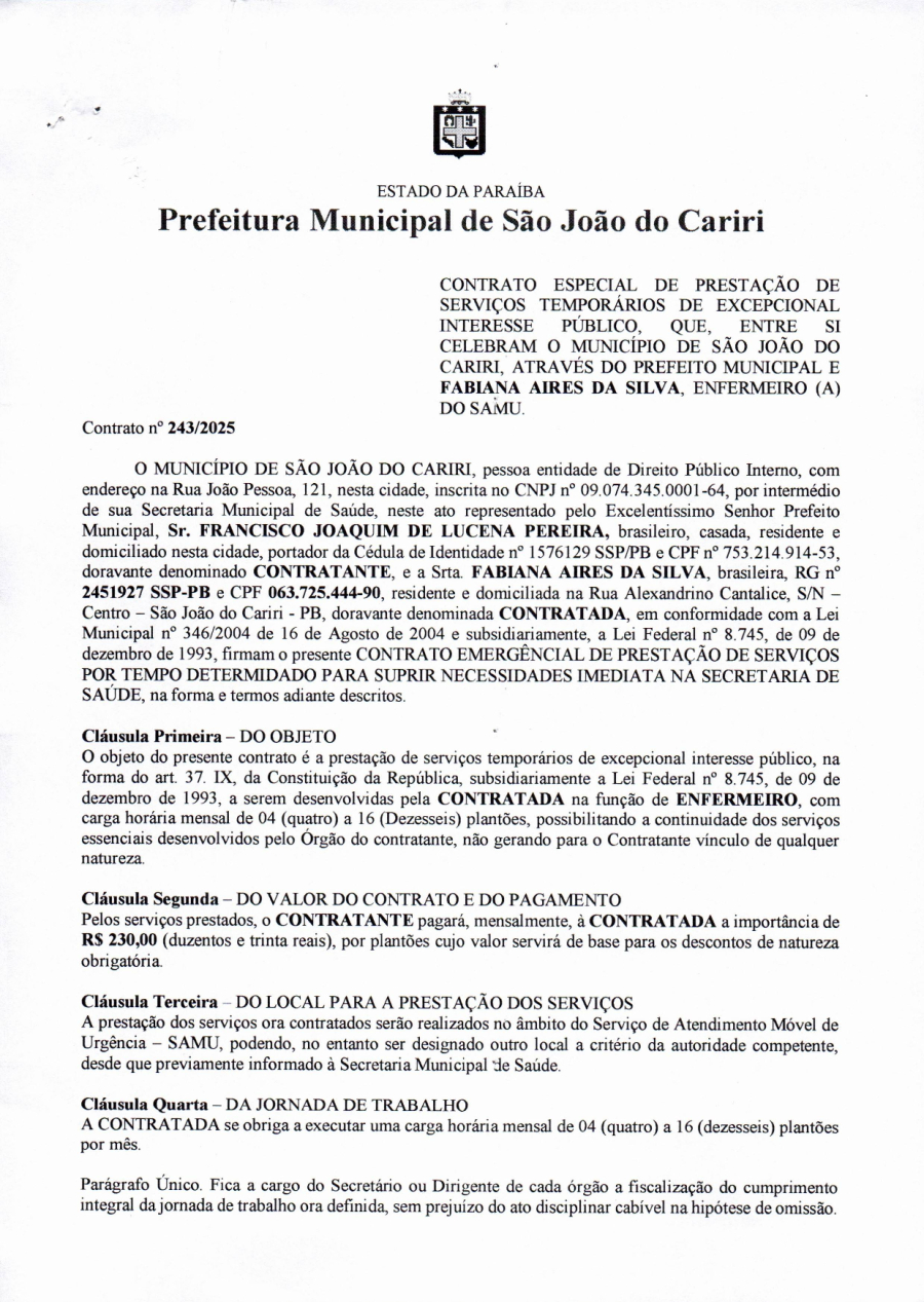 CONTRATO 243/2025 - FABIANA AIRES DA SILVA