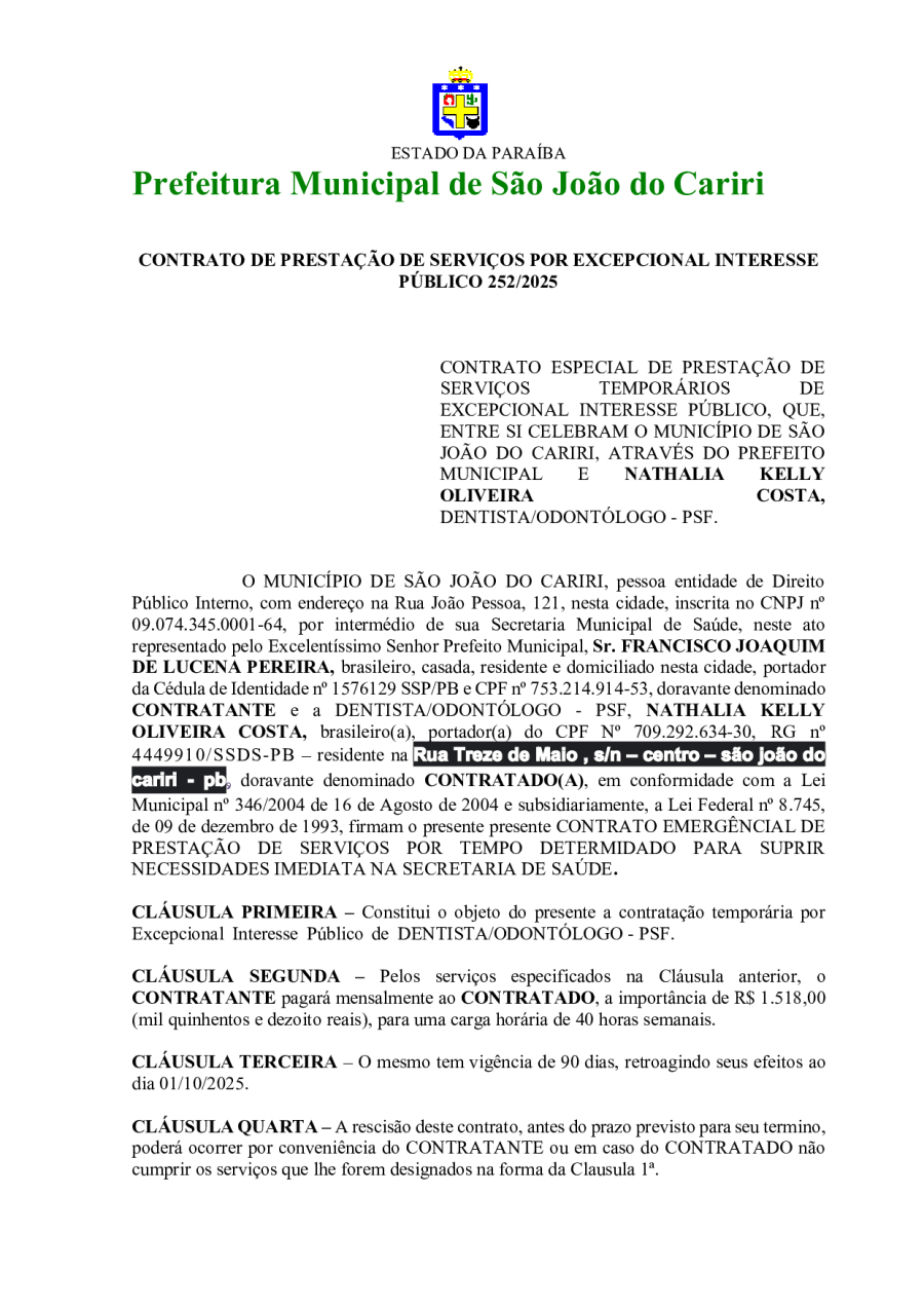 CONTRATO 252/2025 - NATHALIA KELLY OLIVEIRA COSTA