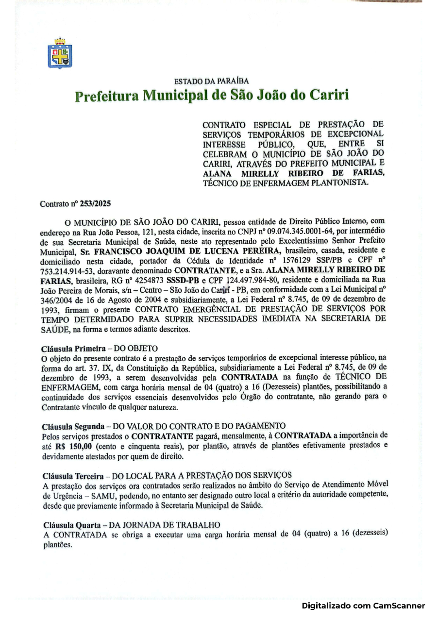 CONTRATO 253/2025 - ALANA MIRELLY RIBEIRO DE FARIAS