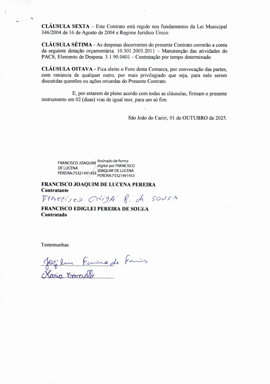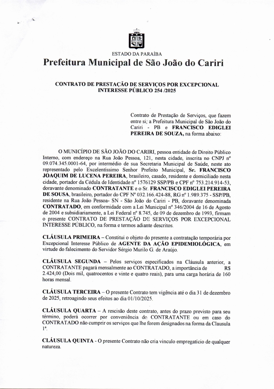 CONTRATO 254/2025 - FRANCISCO EDIGLEY PERIERA DE SOUZA