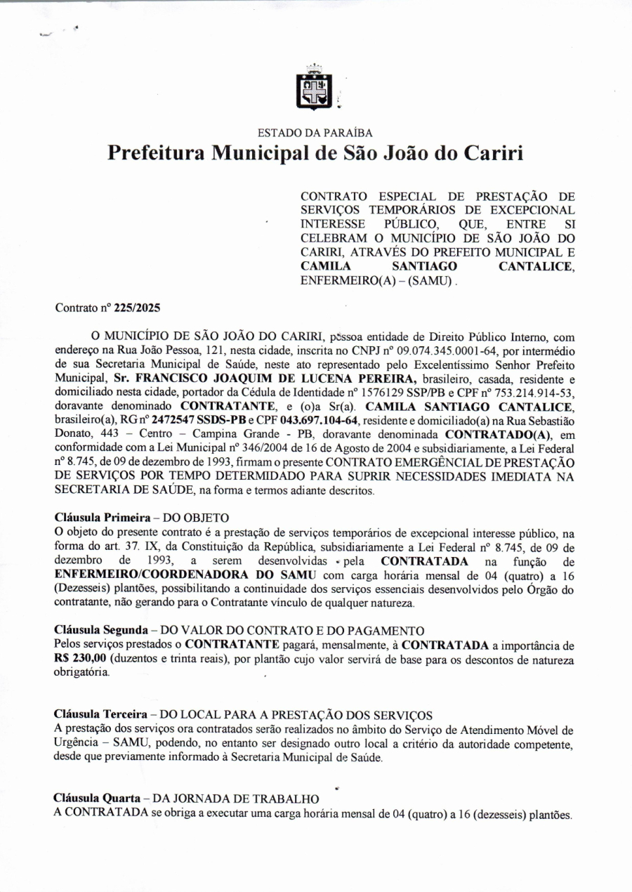 CONTRATO 225/2025 - CAMILA SANTIAGO CANTALICE