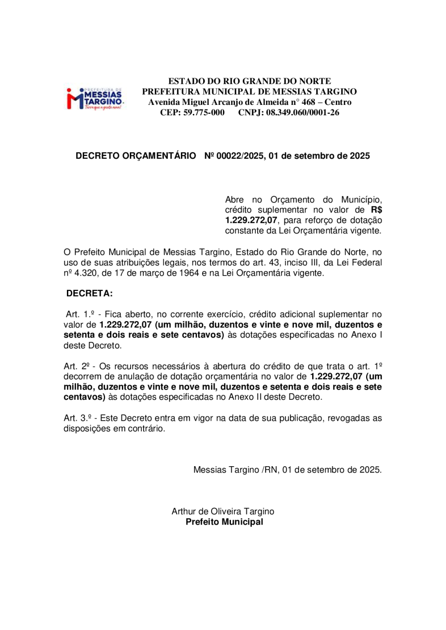 DECRETO ORÇAMENTÁRIO Nº 00022/2025