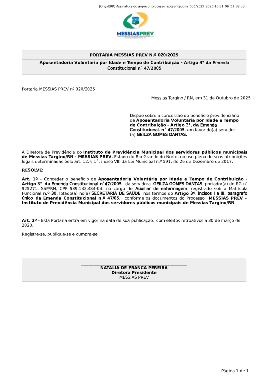 PORTARIA MESSIAS PREV N.º 020/2025