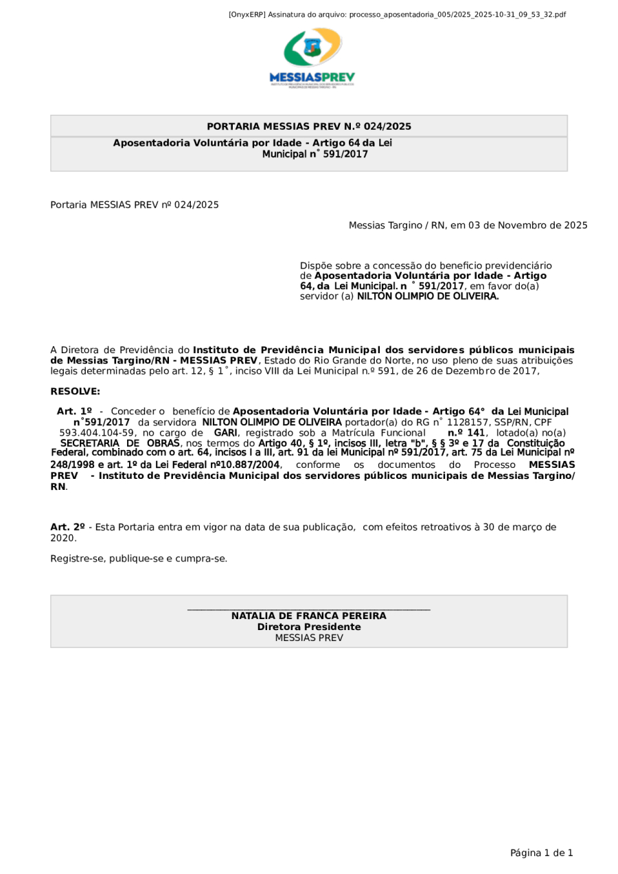 PORTARIA MESSIAS PREV N.º 024/2025
