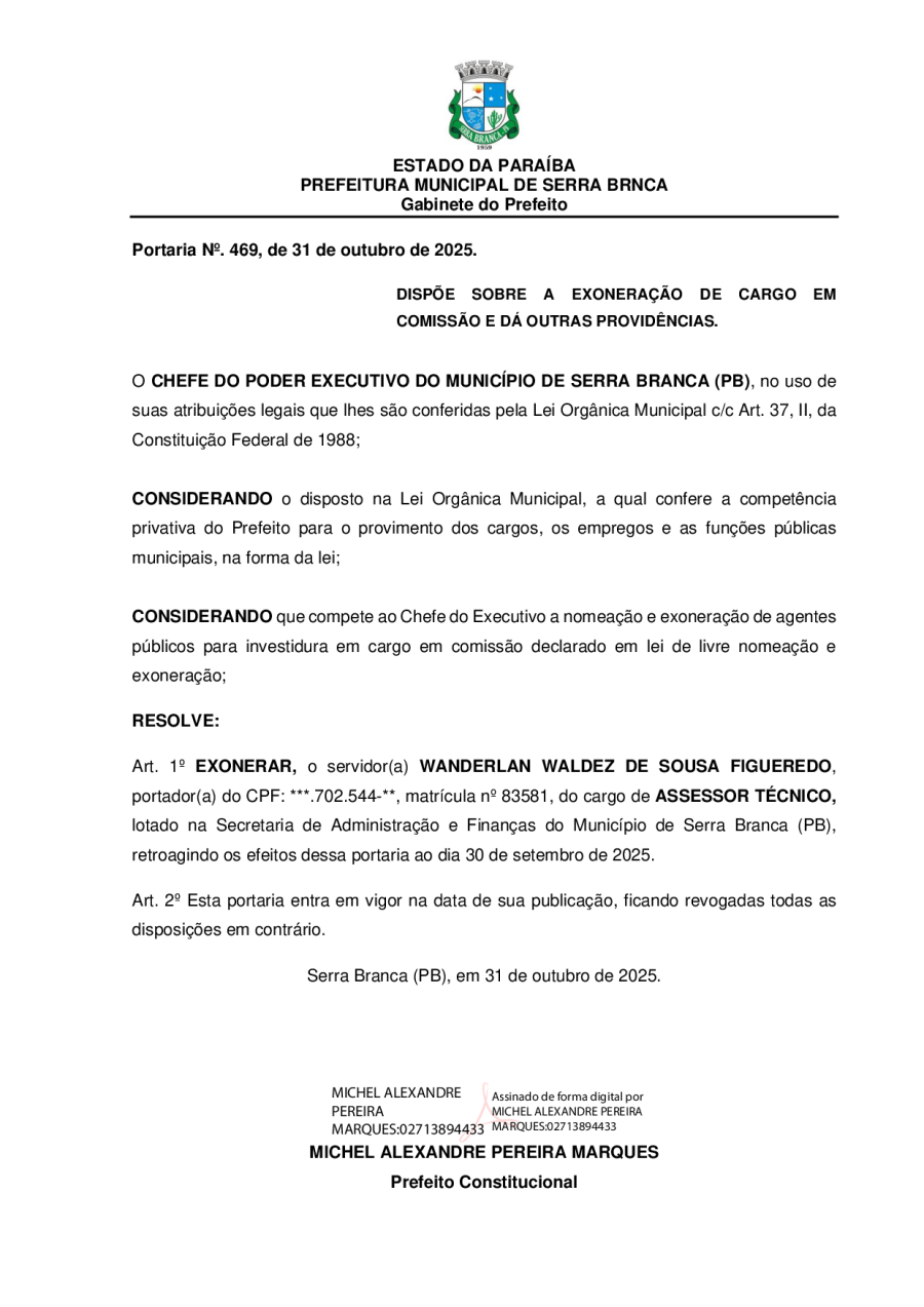 PORTARIA N° 0469/2025 - EDXONERAÇÃO DE WANDERLAN WALDEZ DE SOUSA FIGUEREDO