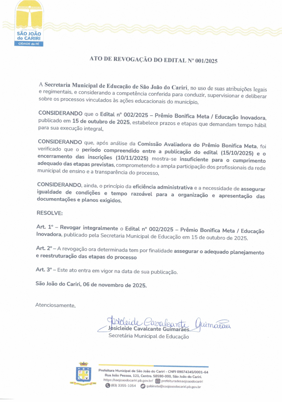ATO DE REVOGAÇÃO DO EDITAL Nº 001/2025