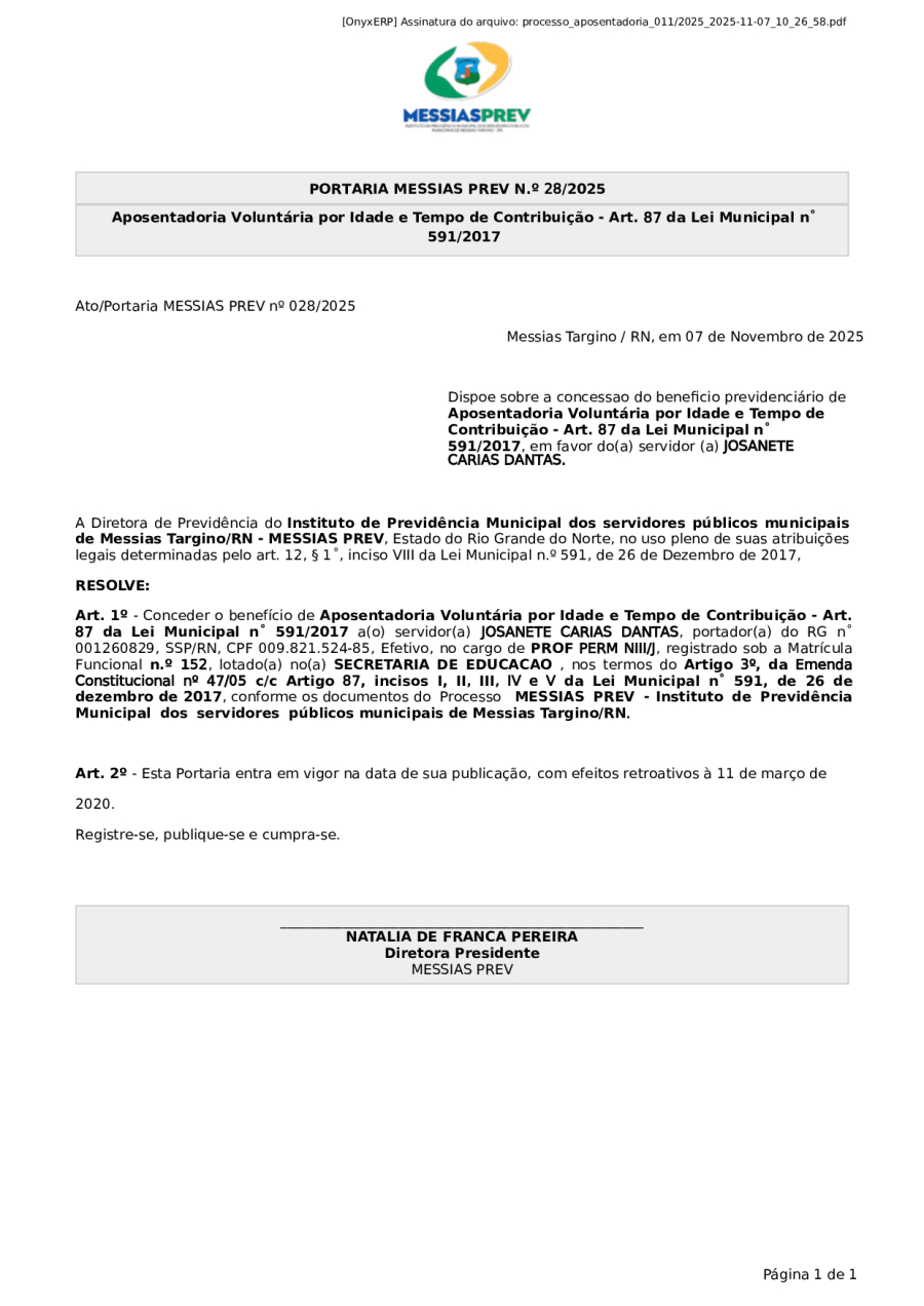 PORTARIA MESSIAS PREV N.º 28/2025