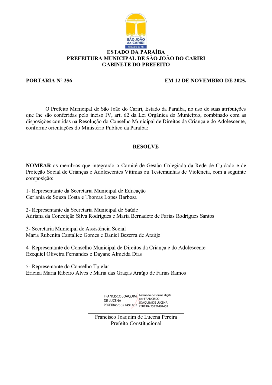 PORTARIA 256/2025 - COMITÊ DE GESTÃO COLEGIADA DA REDE DE CUIDADO E DE PROTEÇÃO SOCIAL DE CRIANÇAS E ADOLESCENTES VÍTIMAS OU TESTEMUNHAS DE VIOLÊNCIA
