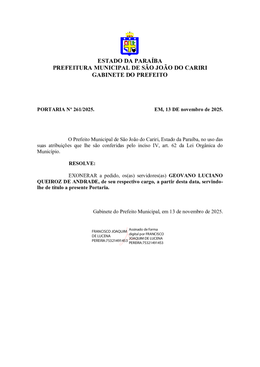 PORTARIA 261/2025 - GEOVANO LUCIANO QUEIROZ DE ANDRADE