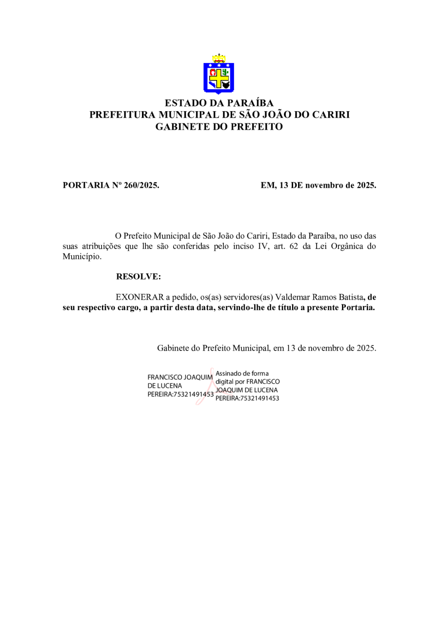 PORTARIA 260/2025 - VALDEMAR RAMOS BATISTA
