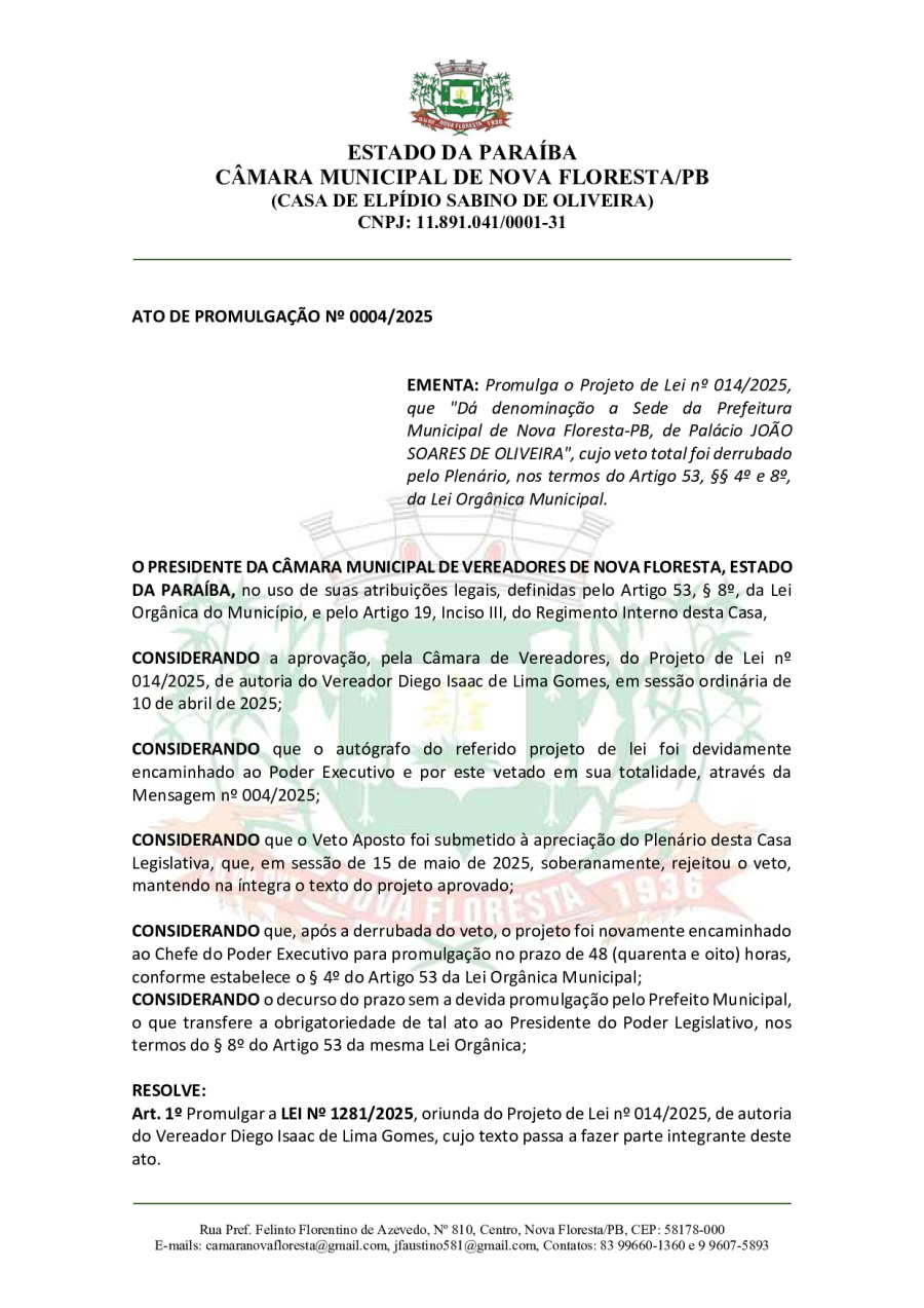 ATO DE PROMULGAÇÃO Nº 0004/2025