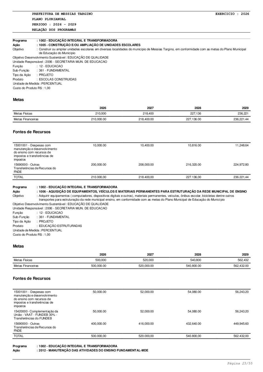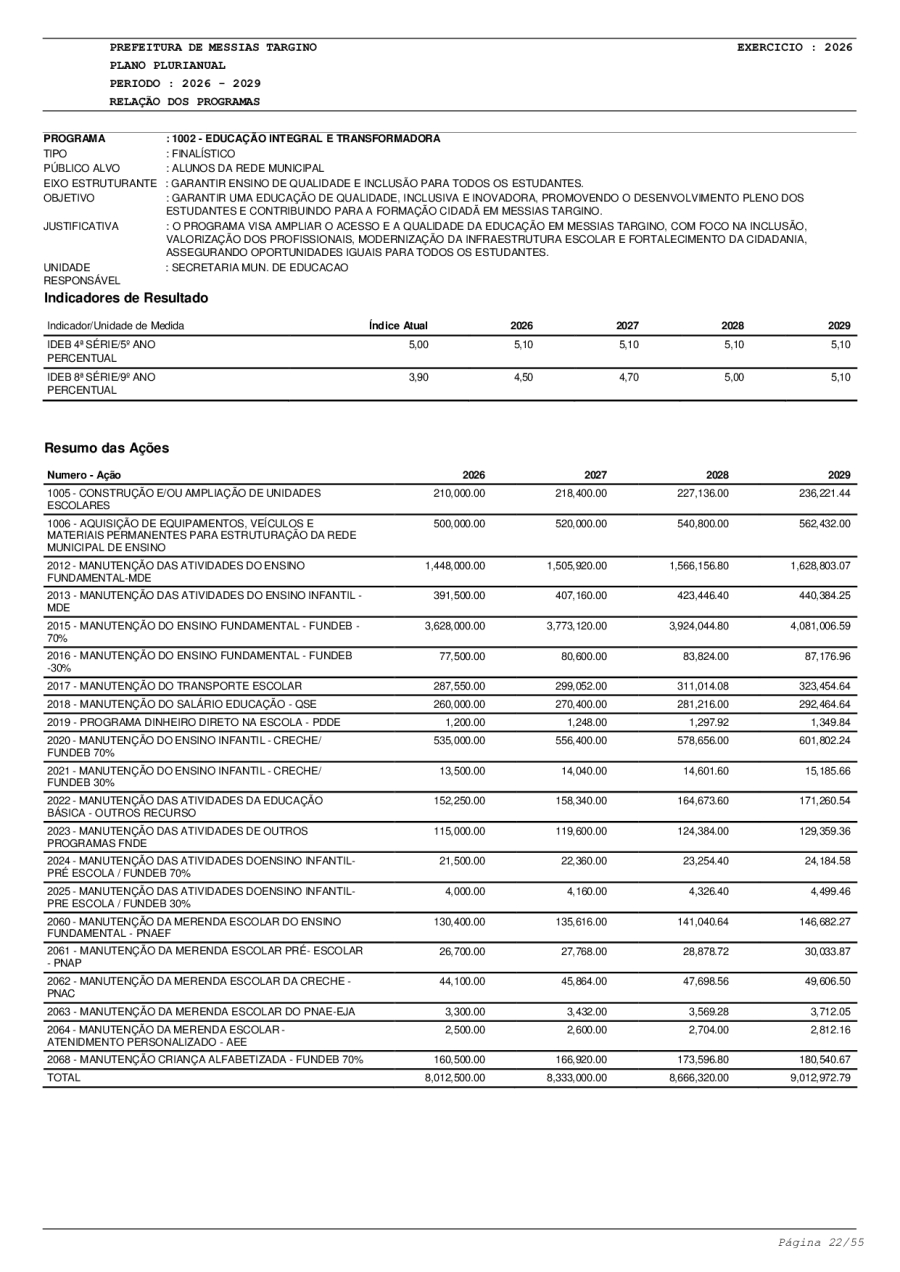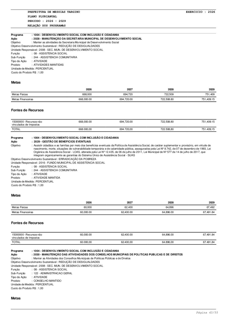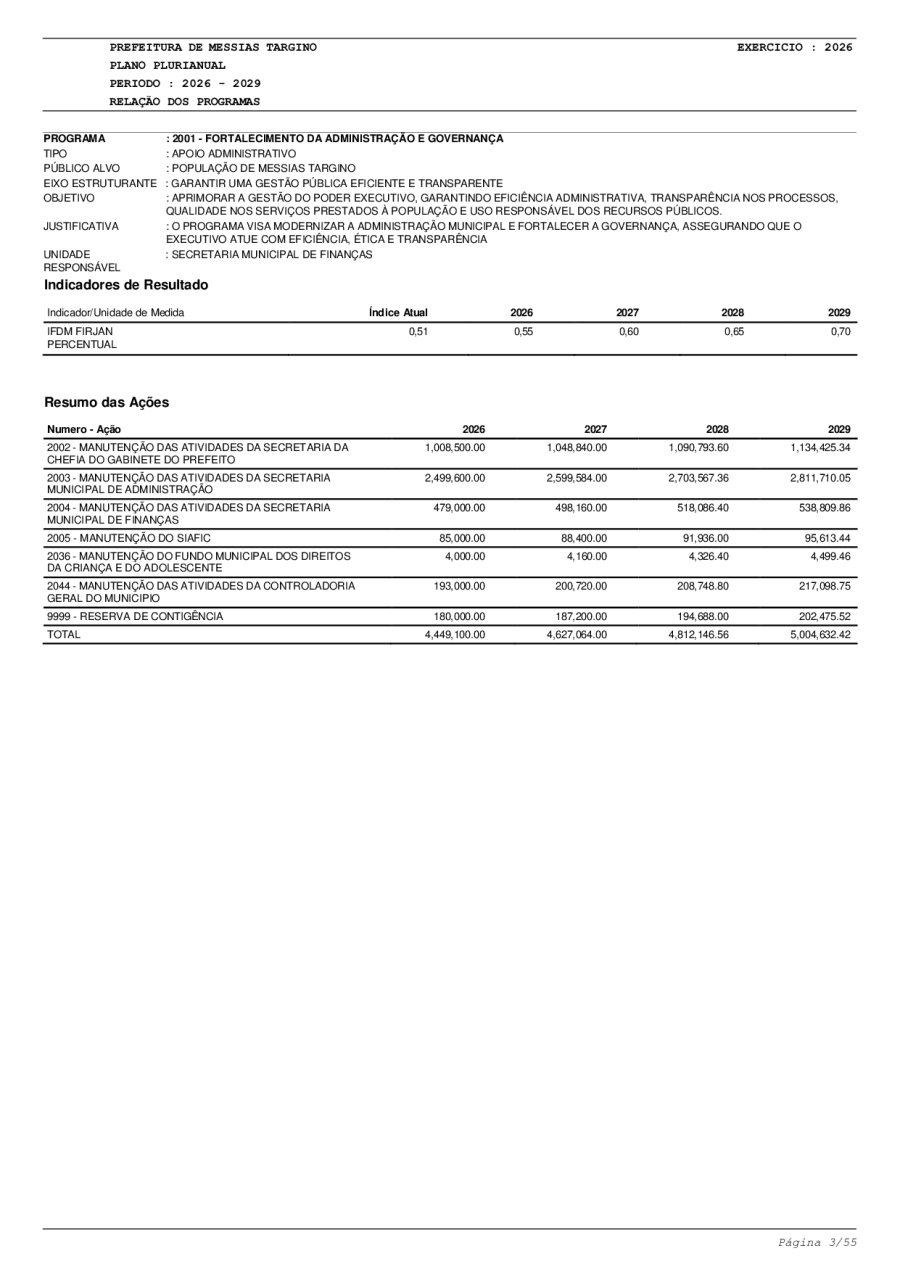 LEI Nº749 - PLANO PLURIANUAL 2026-2029