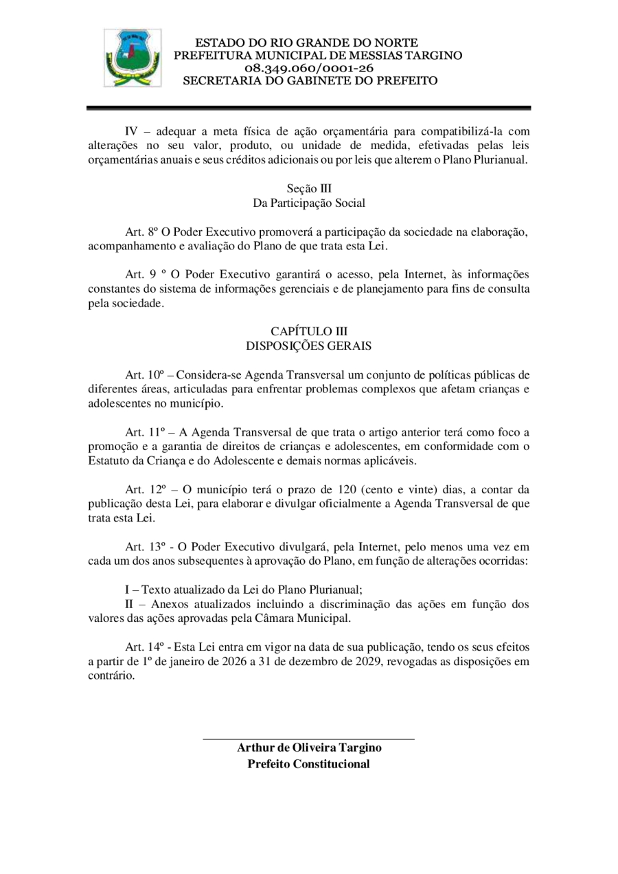 Conforme MP n° 2.200-2 de 24/08/2001, que institui a infraestrutura de chaves Públicas. Matéria Publicada no Diário Oficial do Município de Messias Targino/RN no dia - Edição 01417.