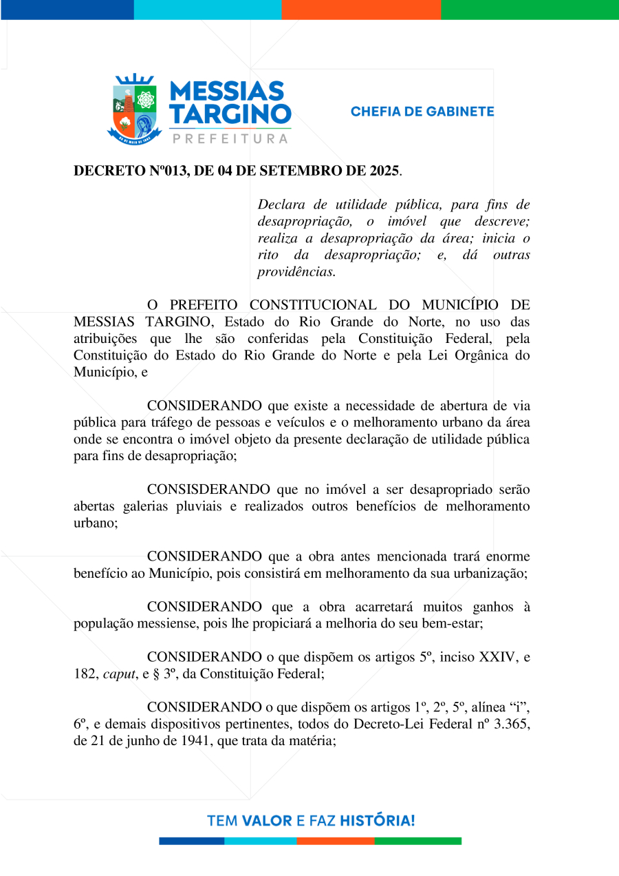 DECRETO Nº13 - DESAPROPRIAÇÃO DE IMÓVEL