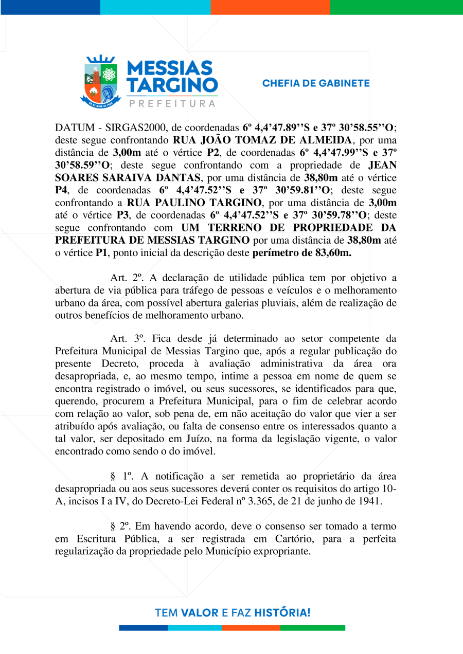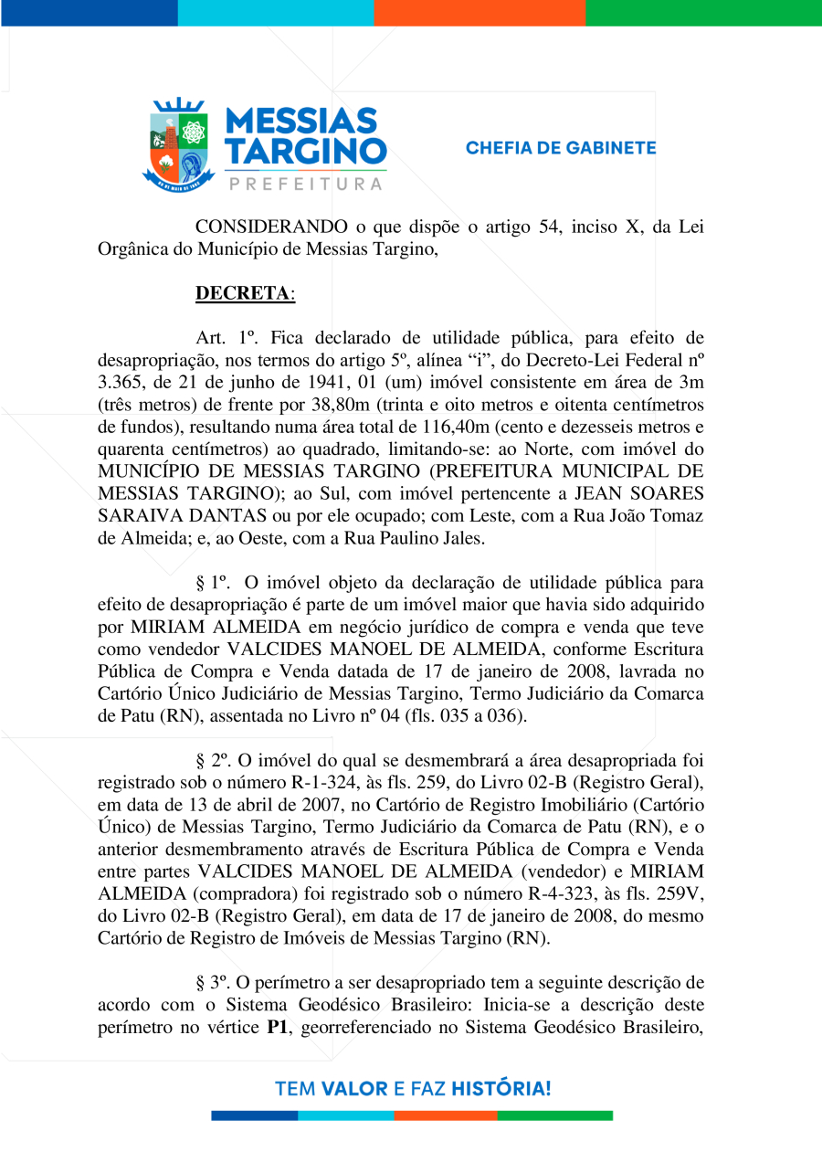 Conforme MP n° 2.200-2 de 24/08/2001, que institui a infraestrutura de chaves Públicas. Matéria Publicada no Diário Oficial do Município de Messias Targino/RN no dia - Edição 01418.
