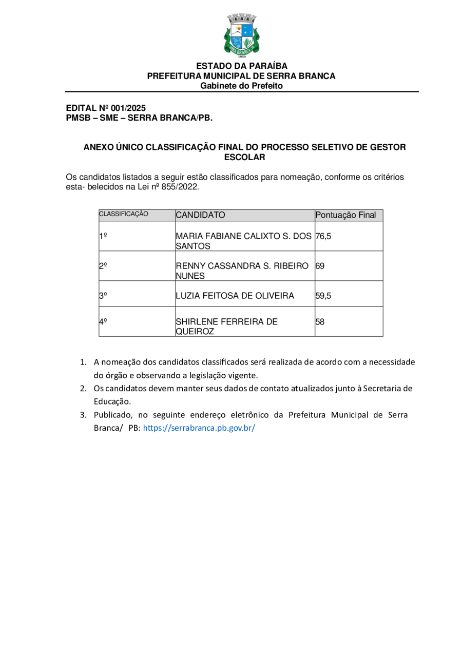 Conforme MP n° 2.200-2 de 24/08/2001, que institui a infraestrutura de chaves Públicas. Matéria Publicada no Diário Oficial do Município de Serra Branca/PB no dia - Edição 00224.