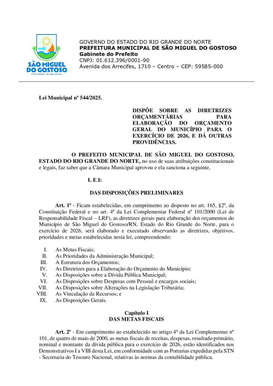 LEI MUNICIPAL Nº 544/2025 - LDO