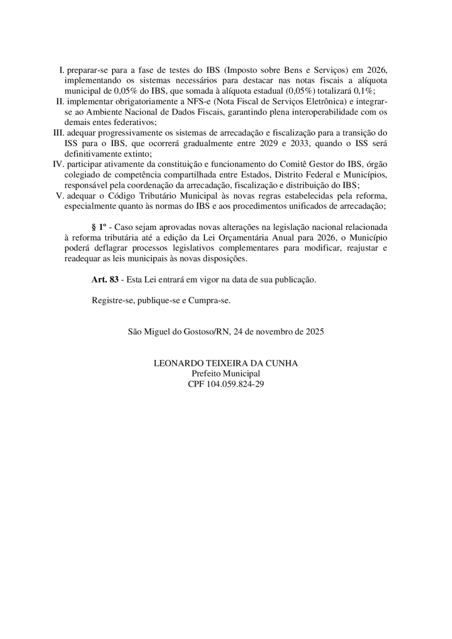 Conforme MP n° 2.200-2 de 24/08/2001, que institui a infraestrutura de chaves Públicas. Matéria Publicada no Diário Oficial do Município de São Miguel do Gostoso/RN no dia - Edição 01211.