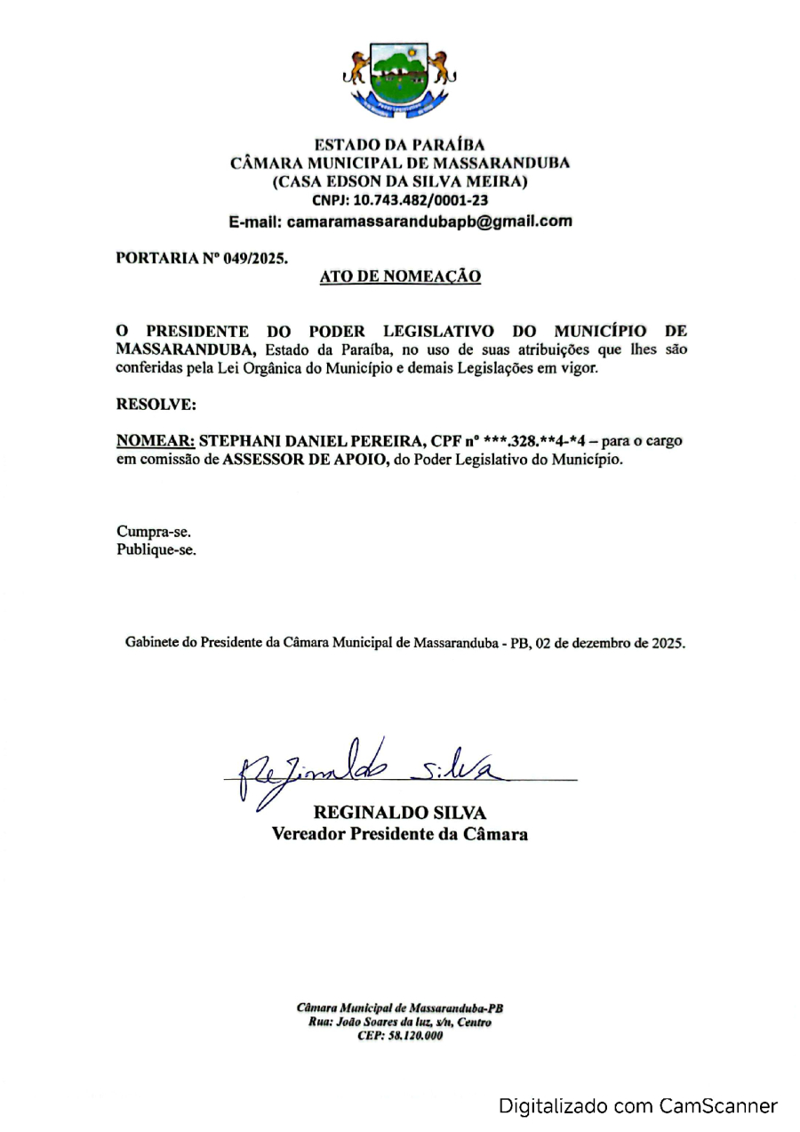 PORTARIA N° 0049/2025 - NOMEAÇÃO DE STEPHANI DANIEL PERREIRA