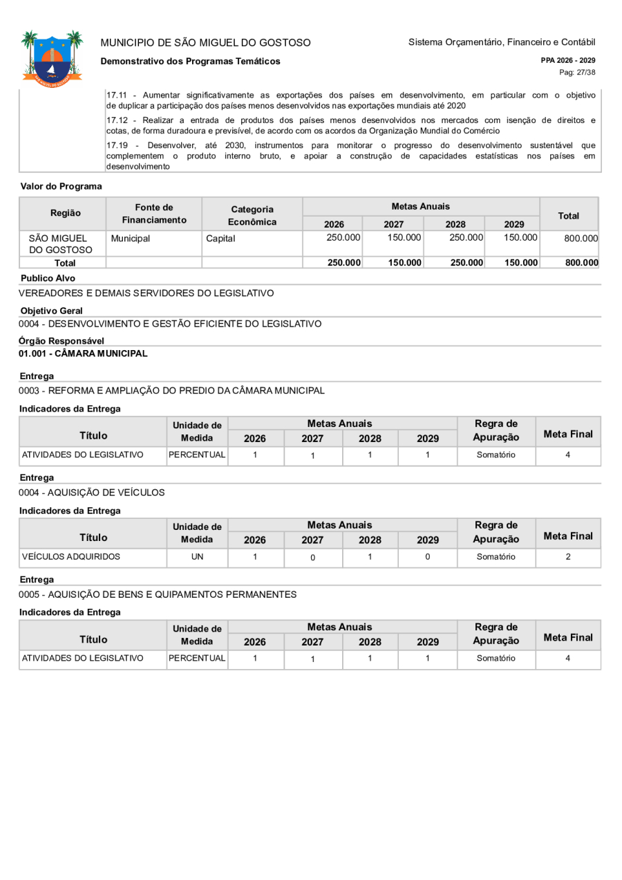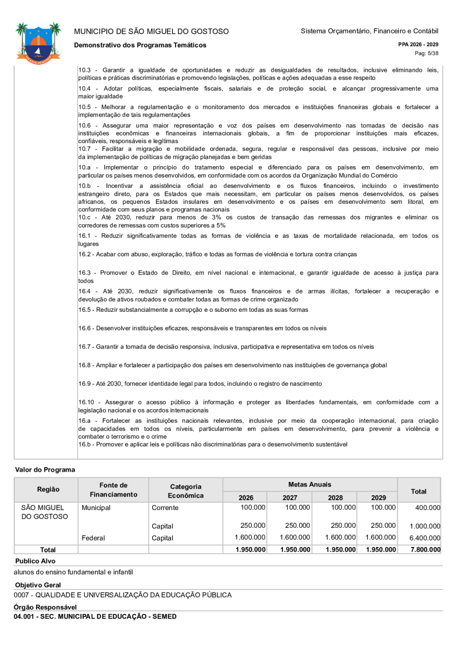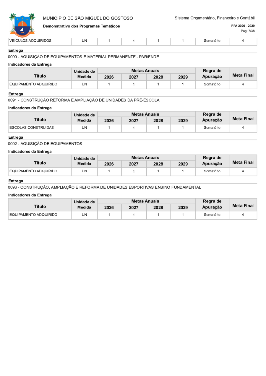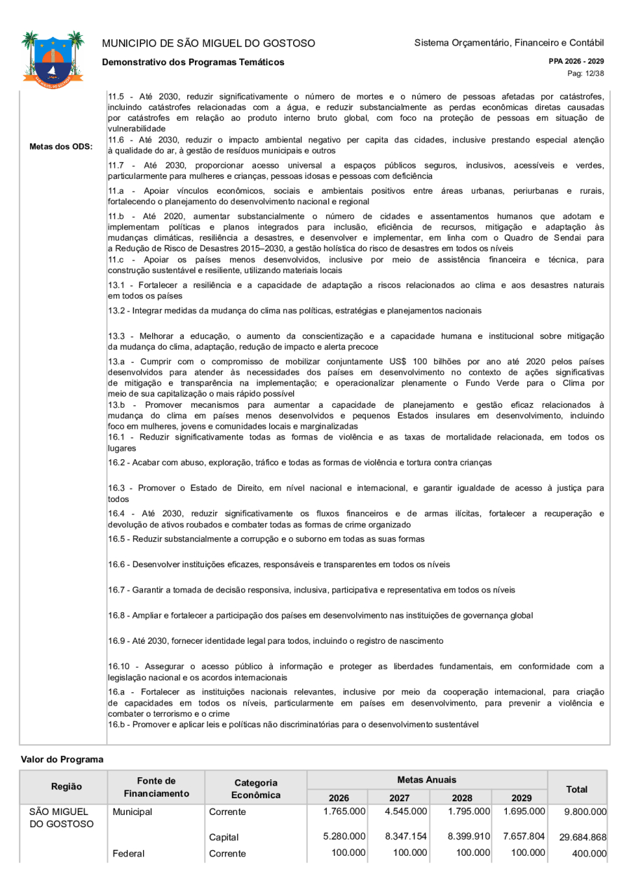 LEI MUNICIPAL Nº. 541/2025-ANEXO VII -PPA- Demonstrativo dos Programas Tematicos