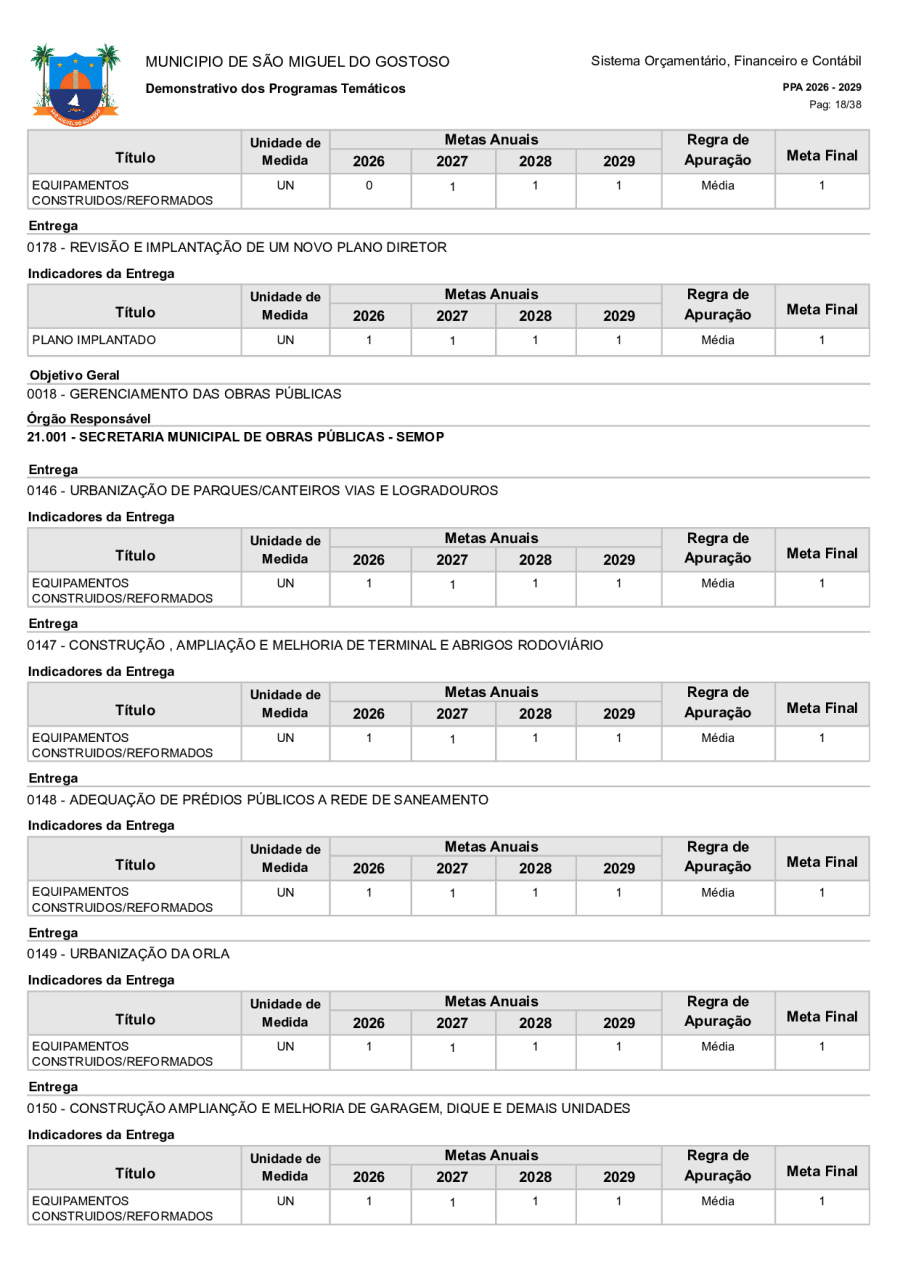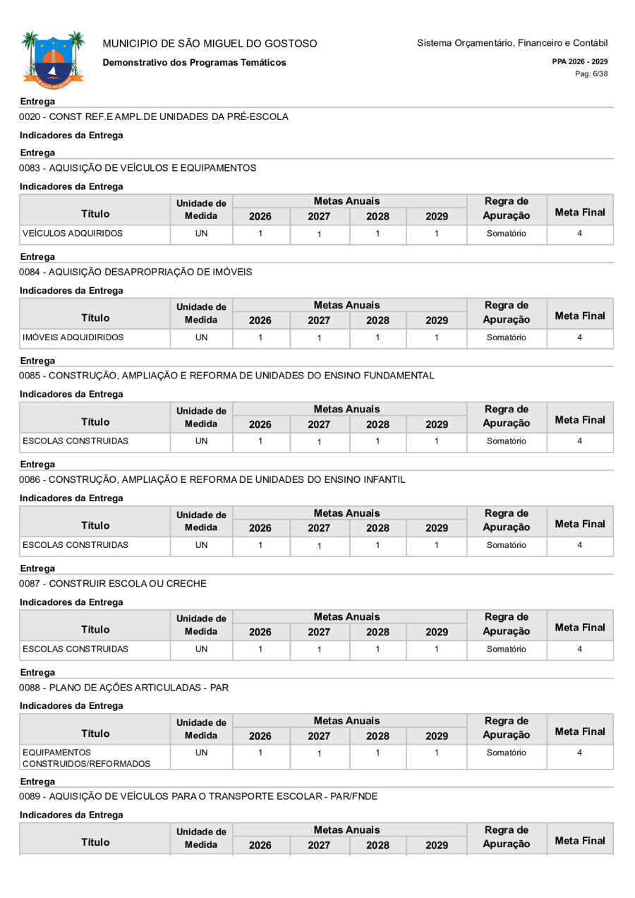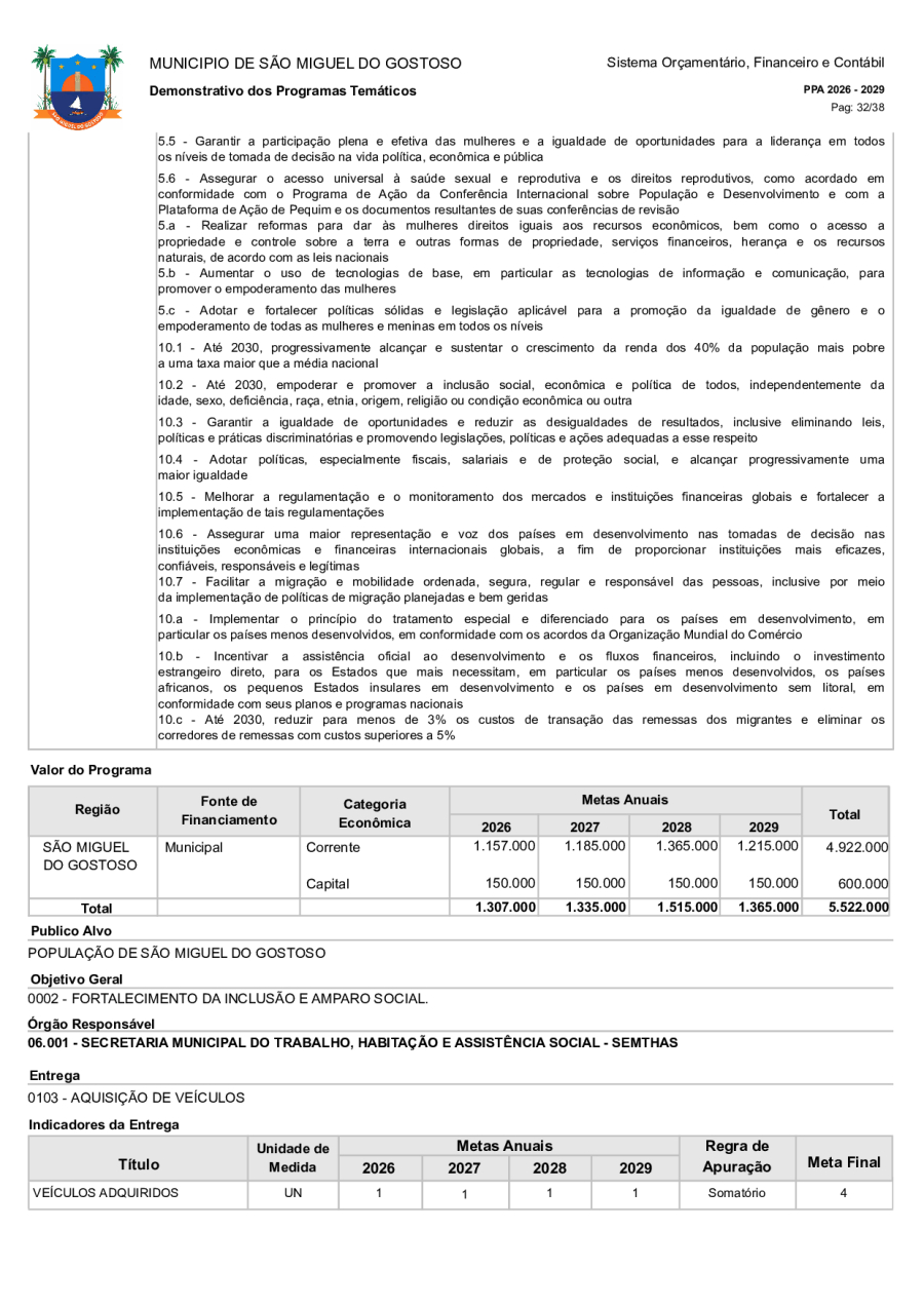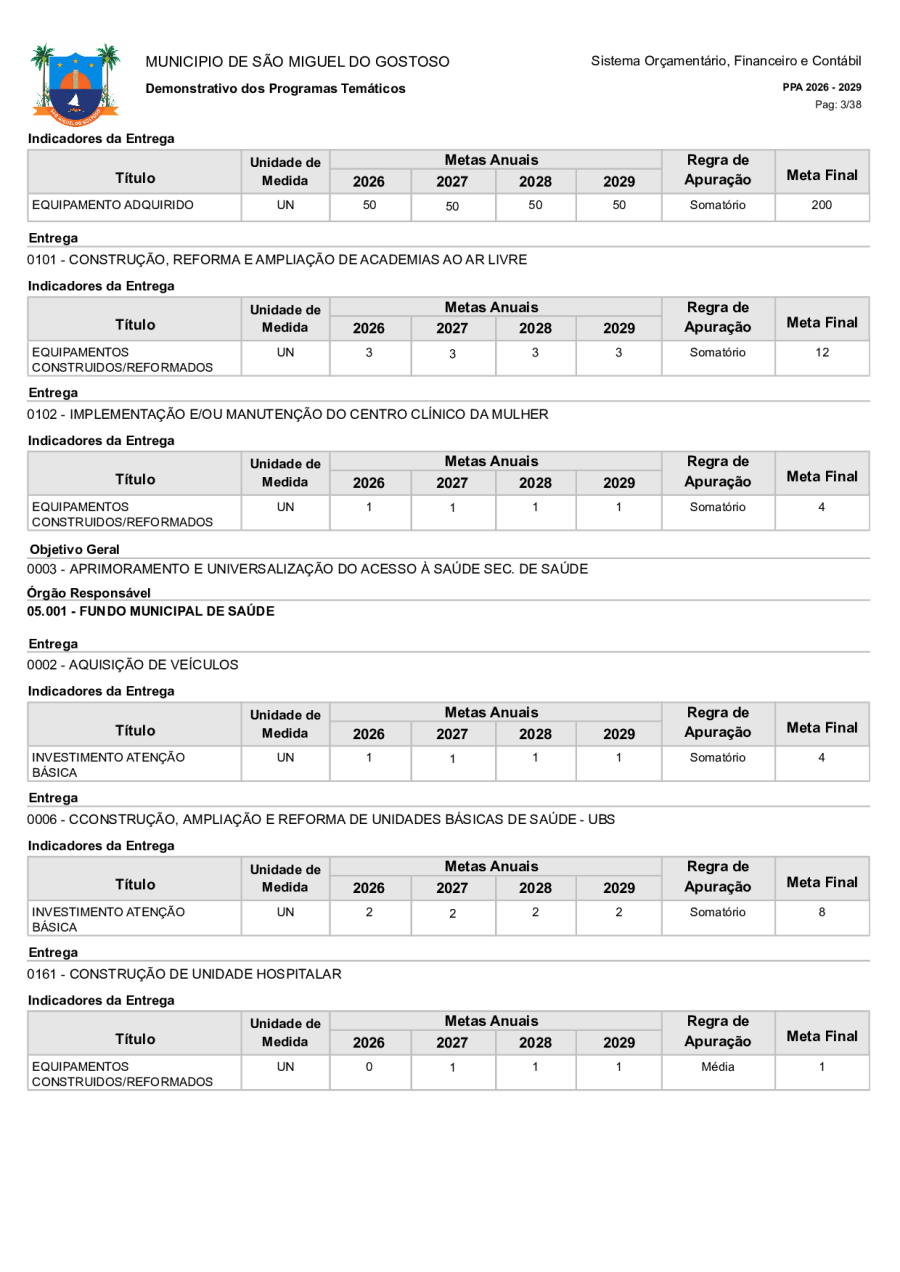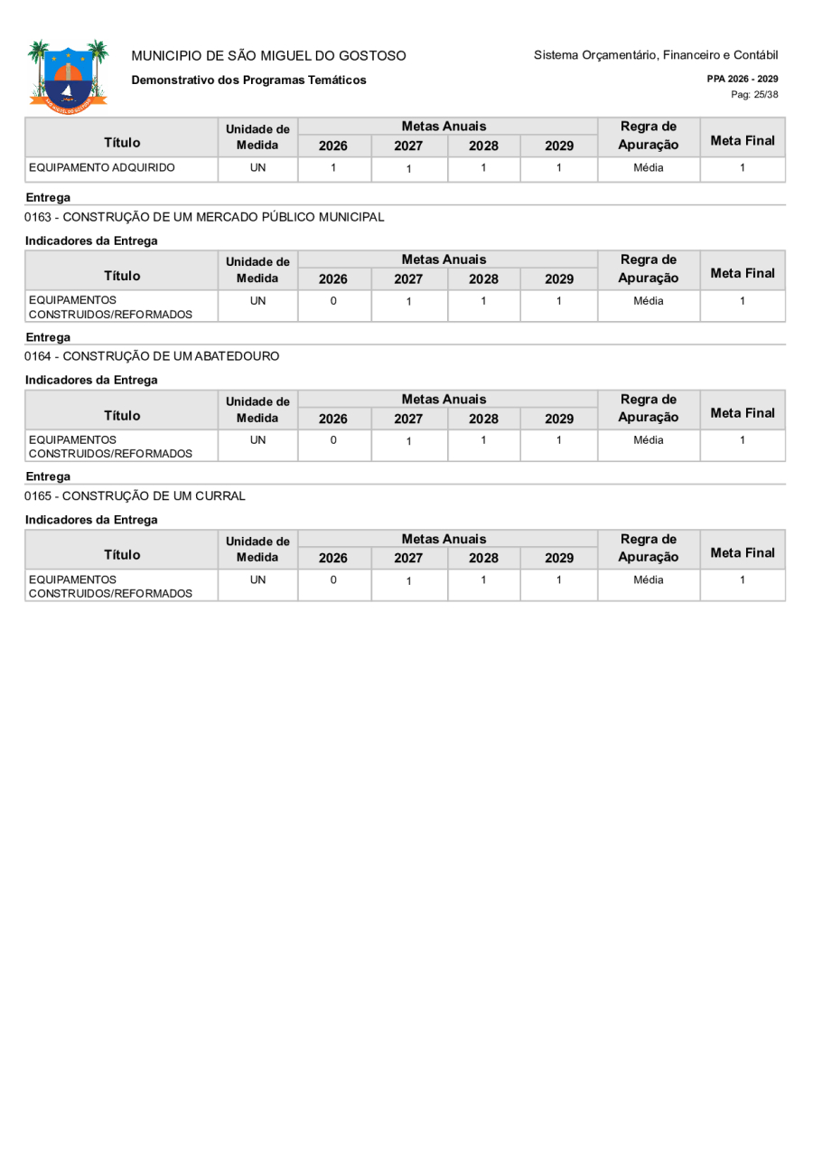 LEI MUNICIPAL Nº. 541/2025-ANEXO VII -PPA- Demonstrativo dos Programas Tematicos