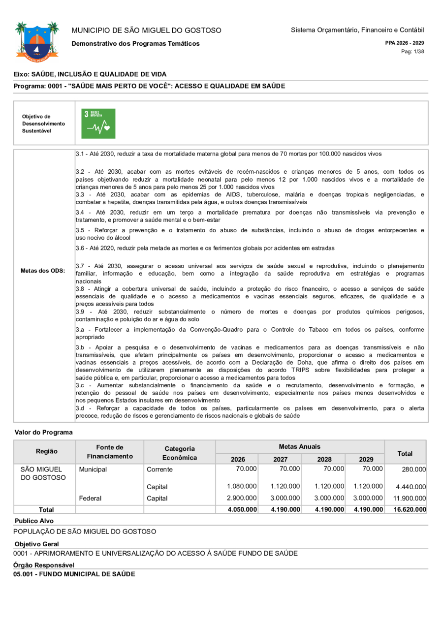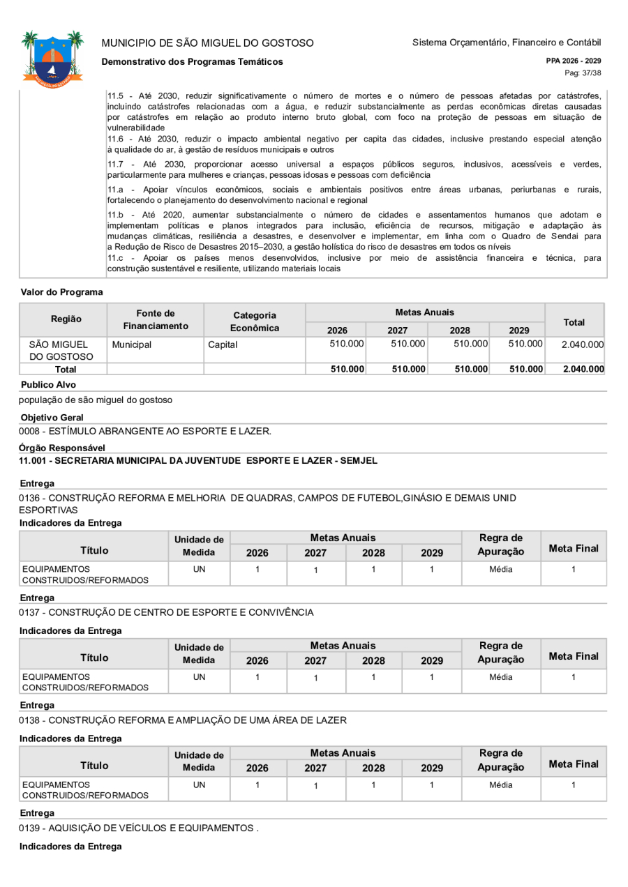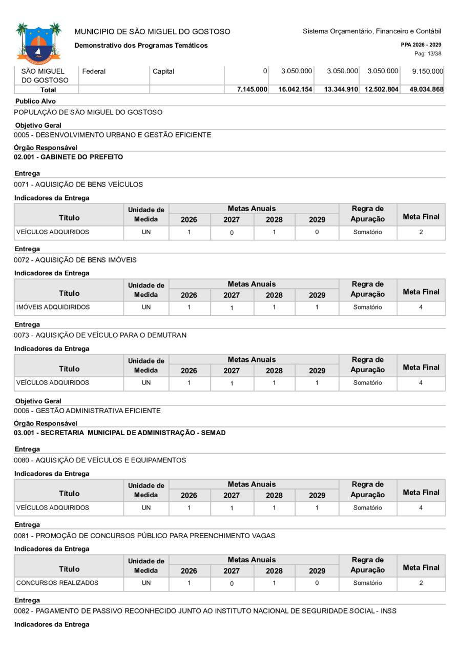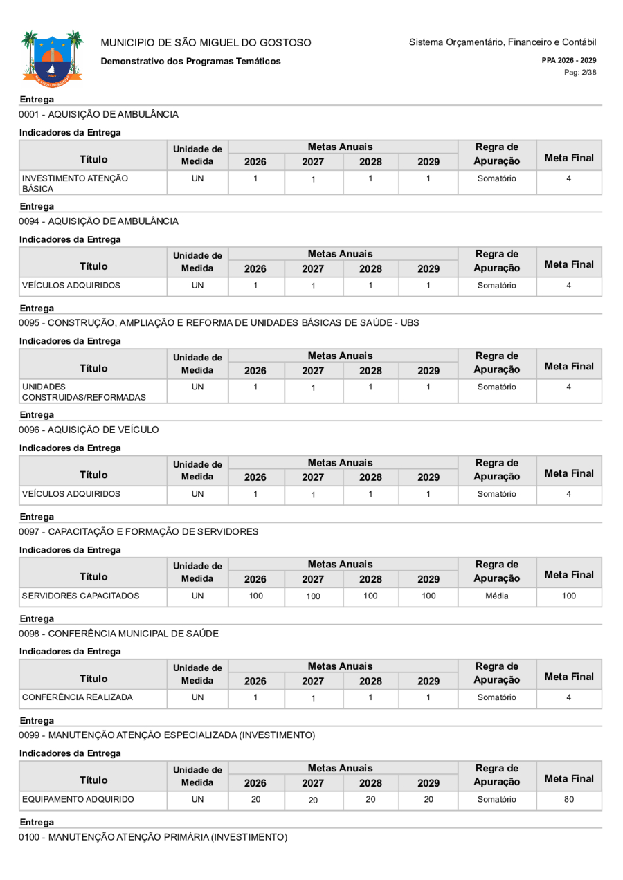 LEI MUNICIPAL Nº. 541/2025-ANEXO VII -PPA- Demonstrativo dos Programas Tematicos