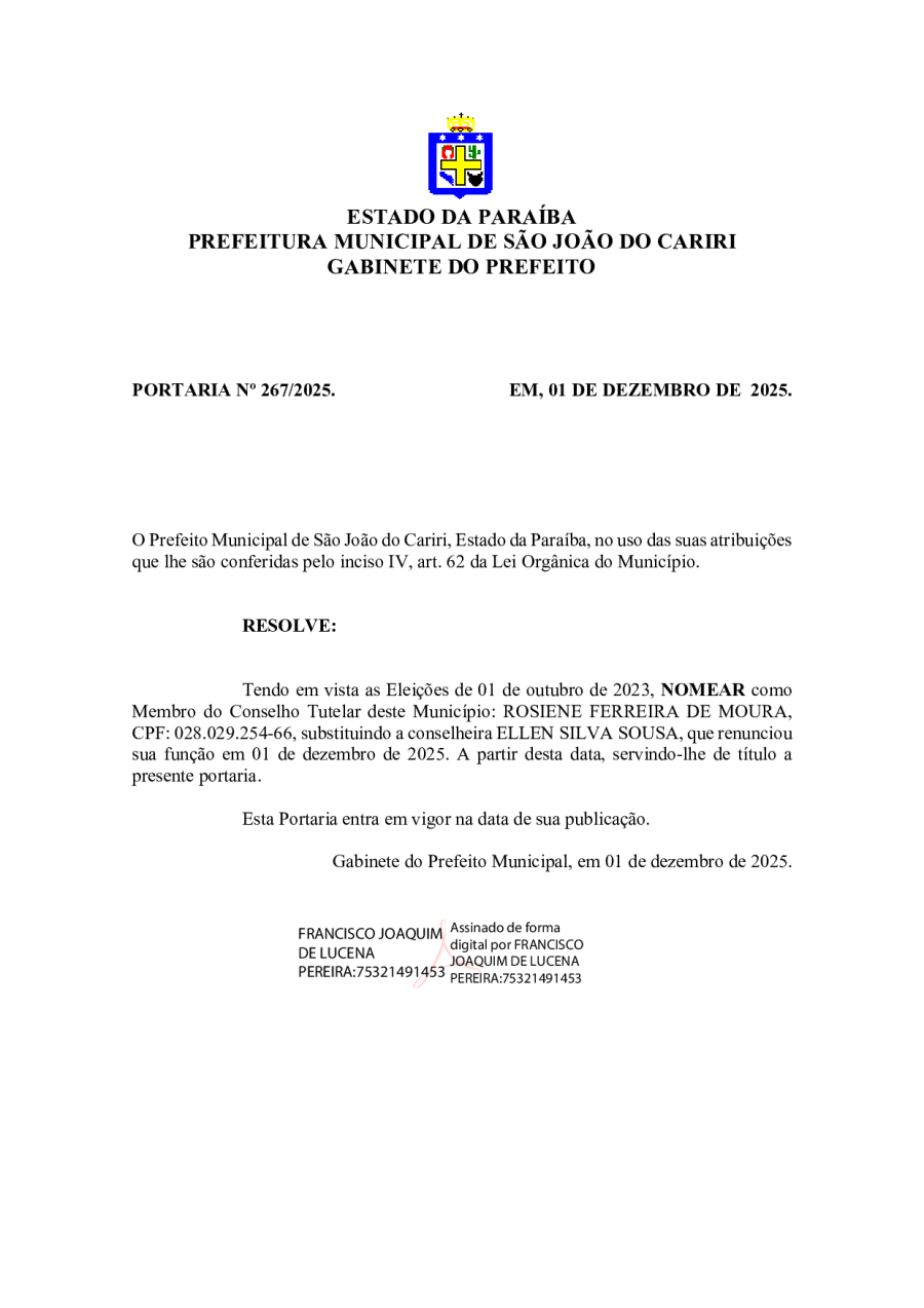 PORTARIA 267/2025 - ROSIENE FERREIRA DE MOURA