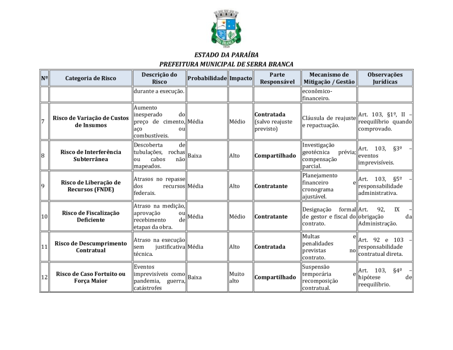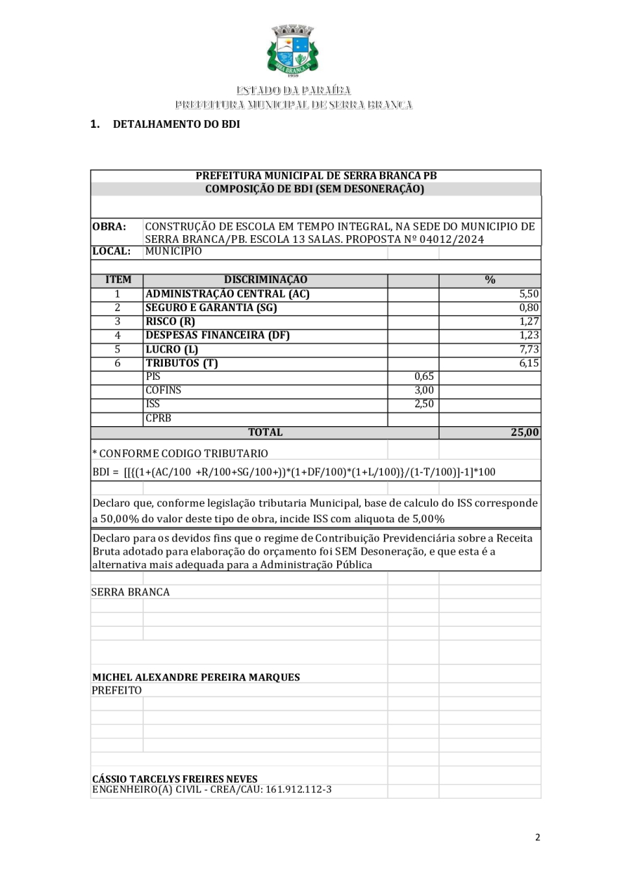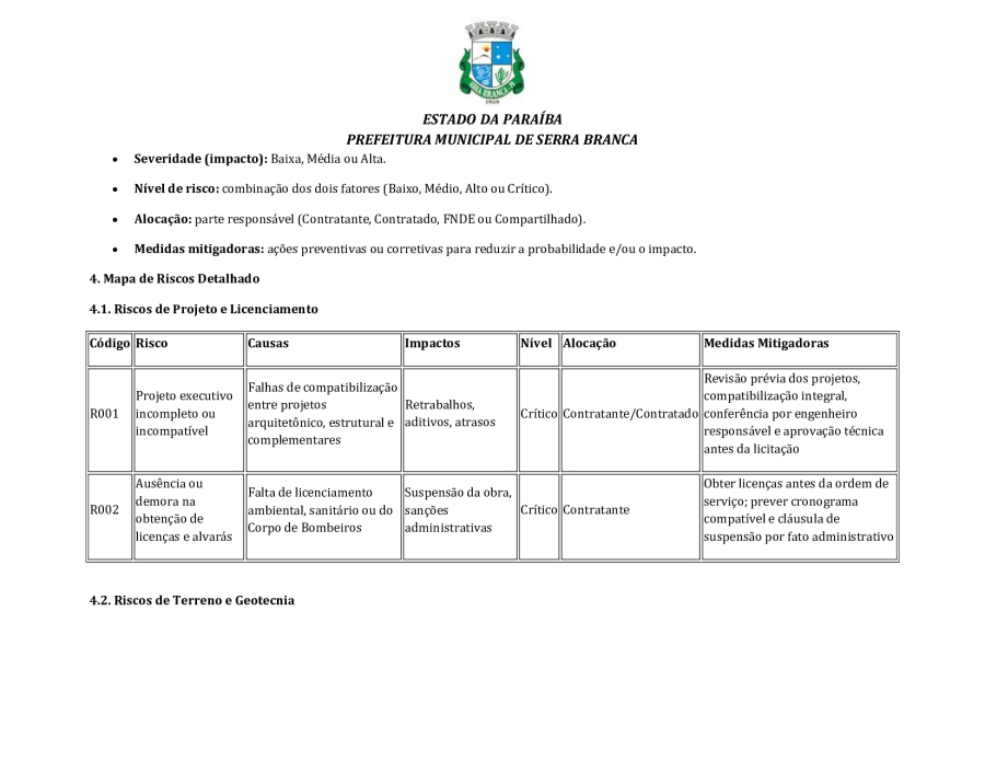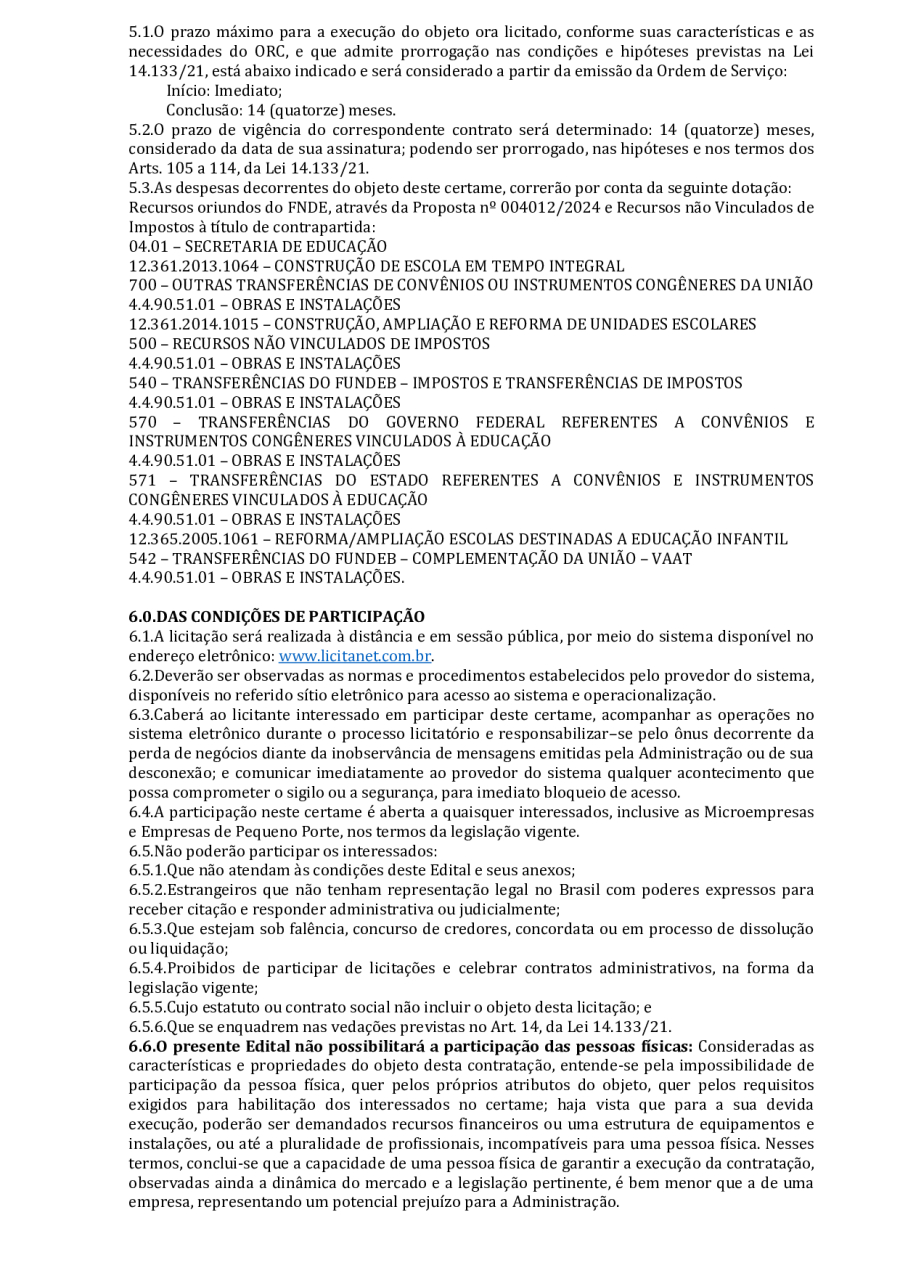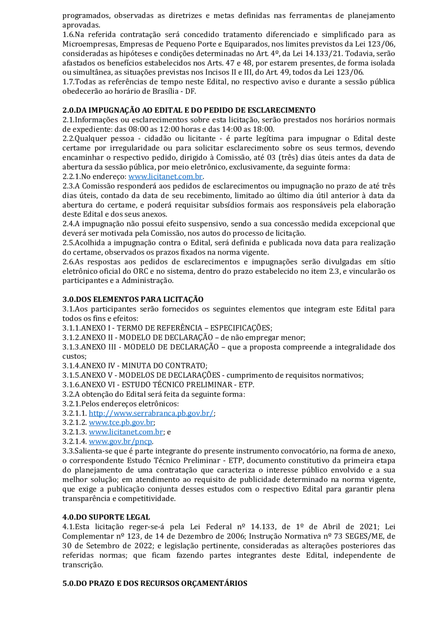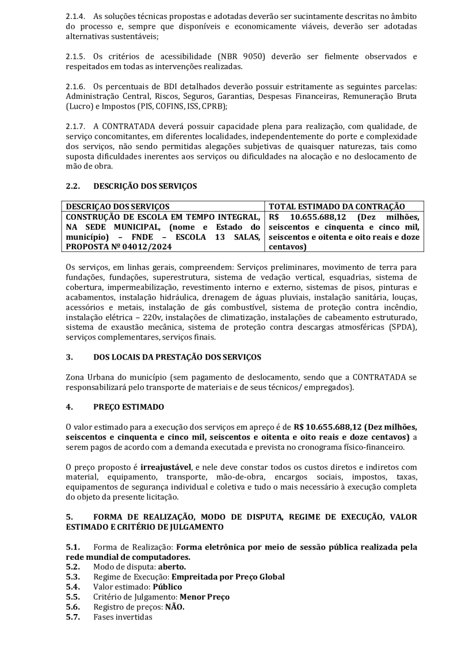 CONCORRÊNCIA ELETRÔNICA Nº 00004/2025 - CONTRATAÇÃO DE EMPRESA ESPCIALIZADA E DO RAMO, PARA CONSTRUÇÃO DE ESCOLA EM TEMPO INTEGRAL NO LOTEAMENTO IDEAL, EM SERRA BRANCA/PB – FNDE ESCOLA DE 13 SALAS, CONFORME PROPOSTA Nº 004012/2024.