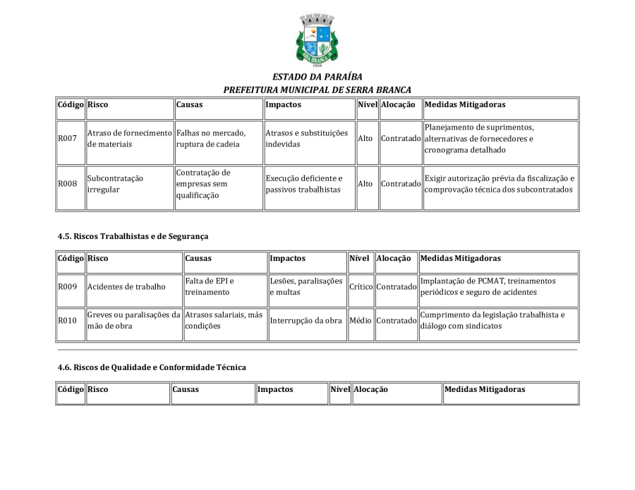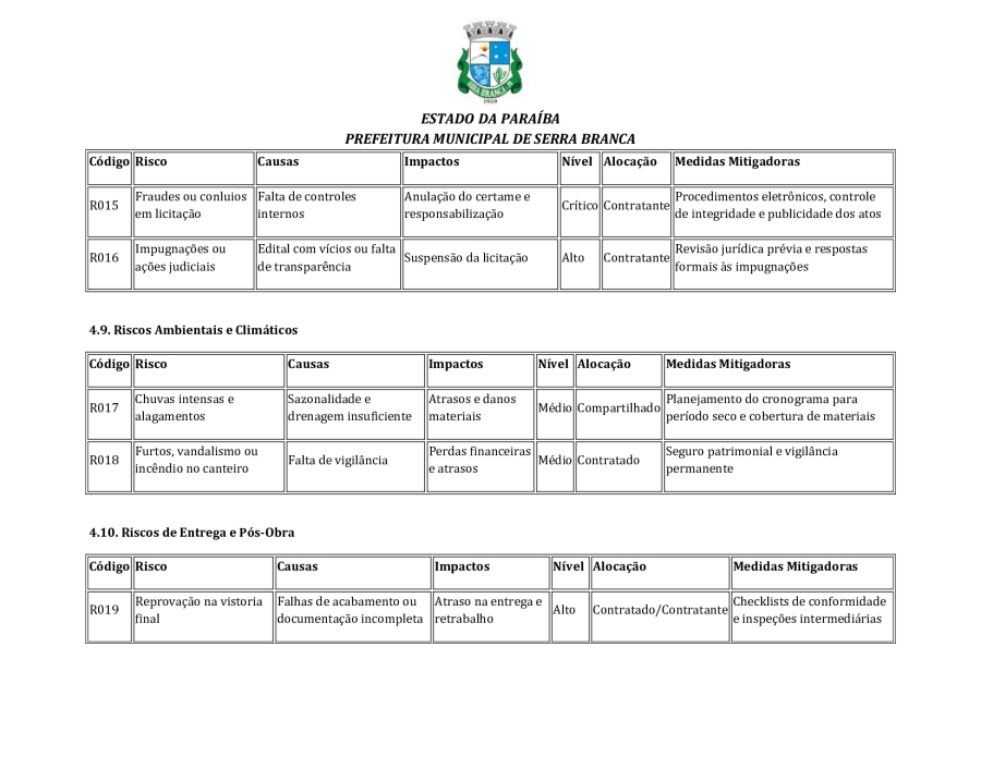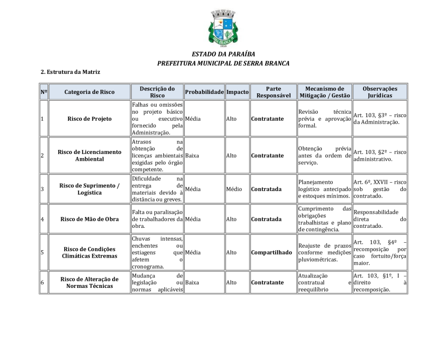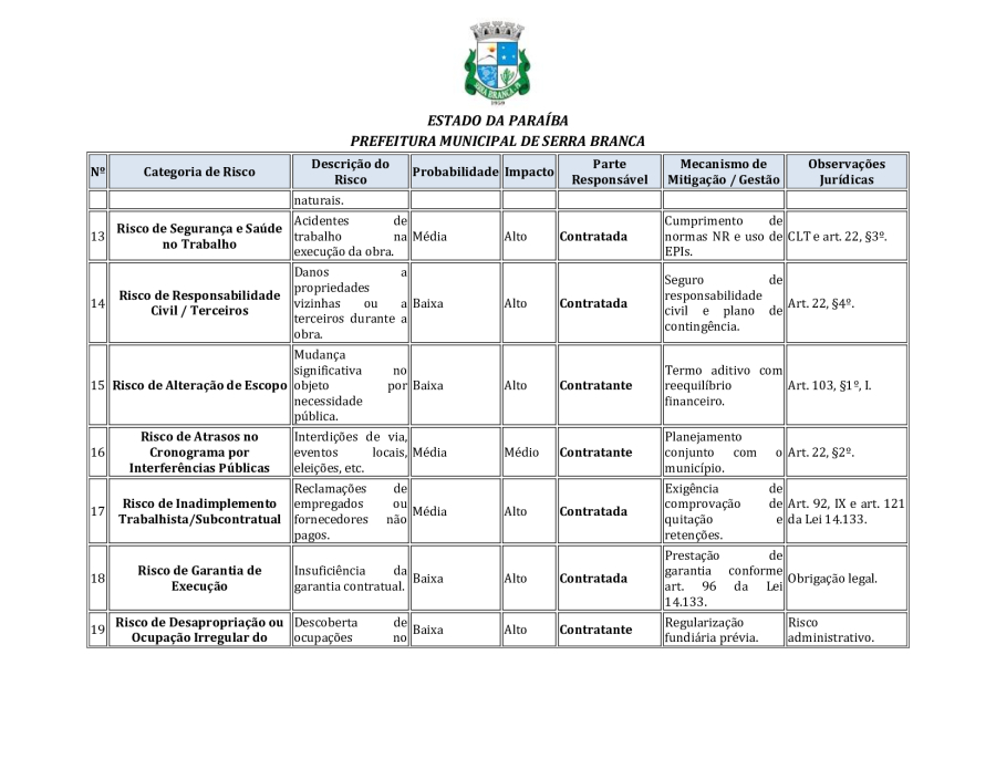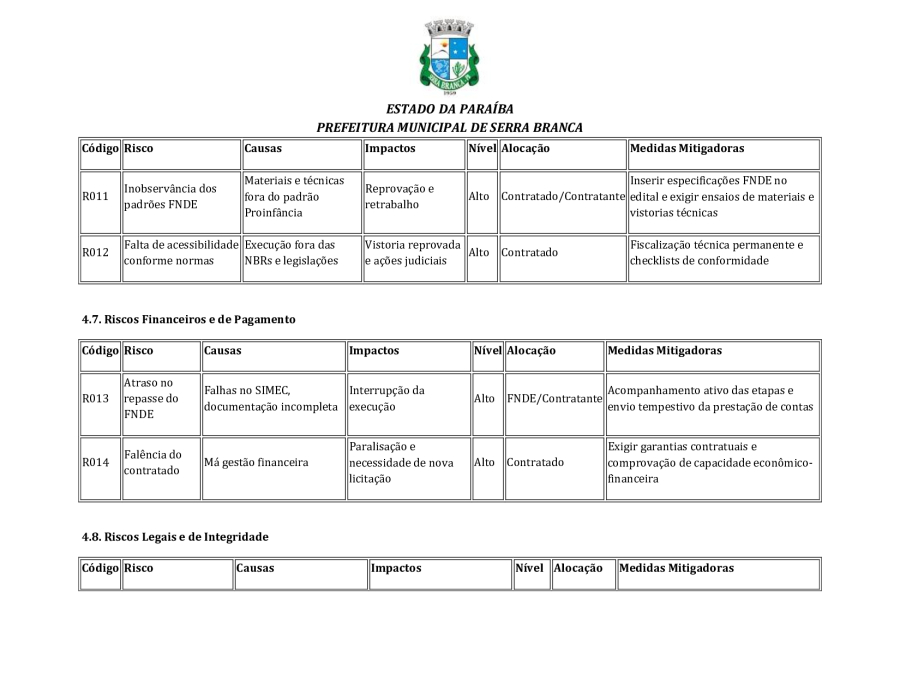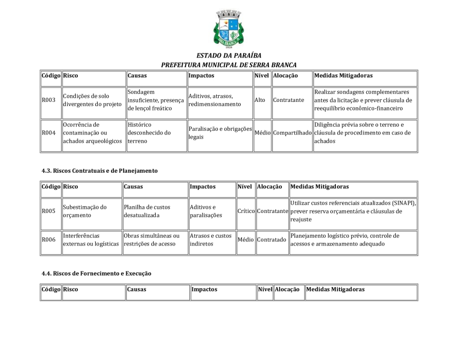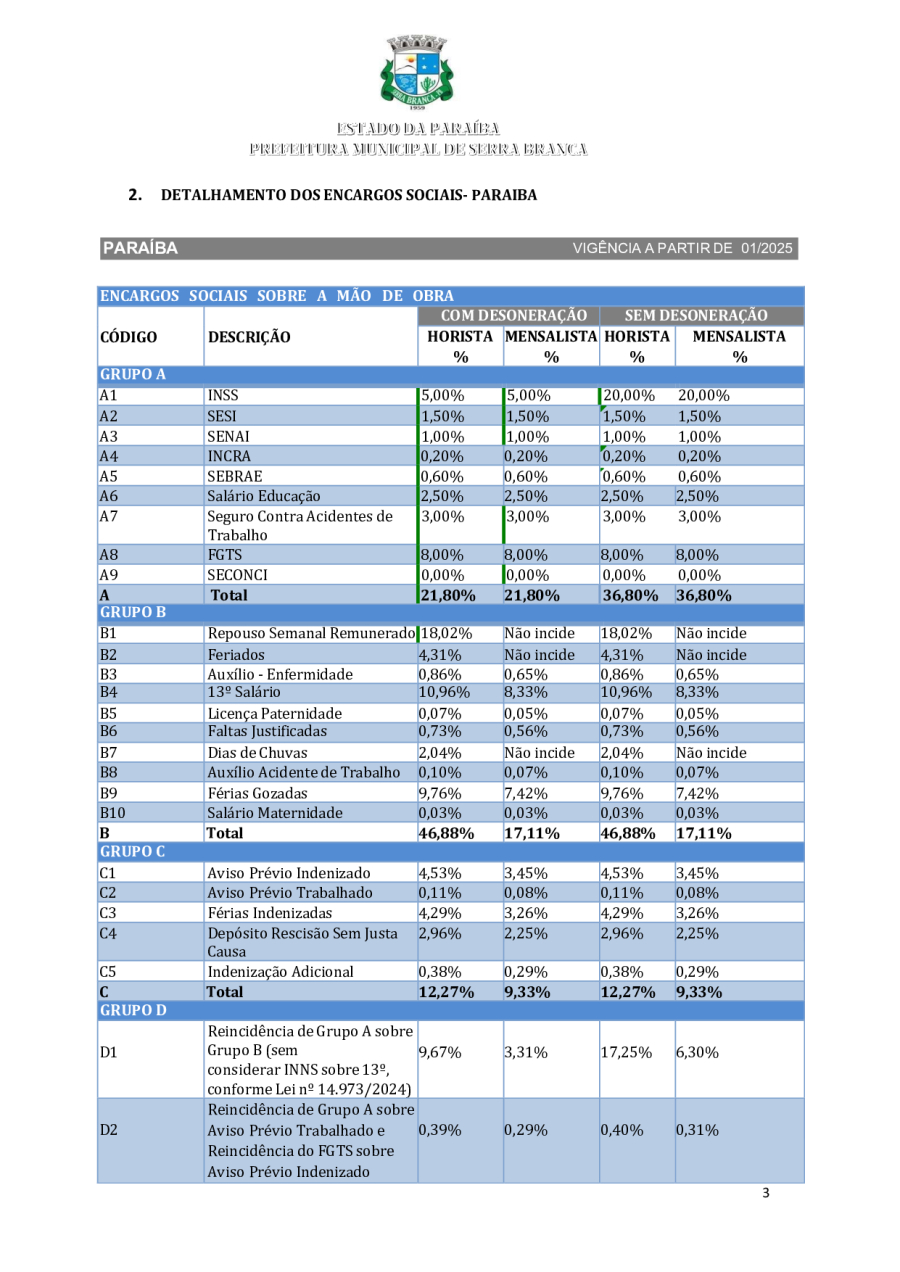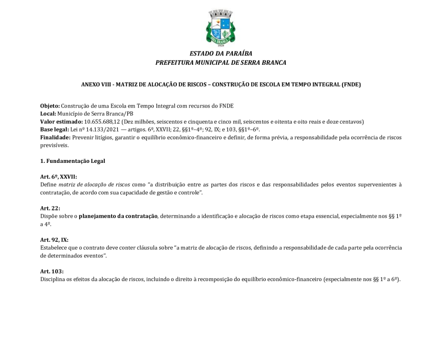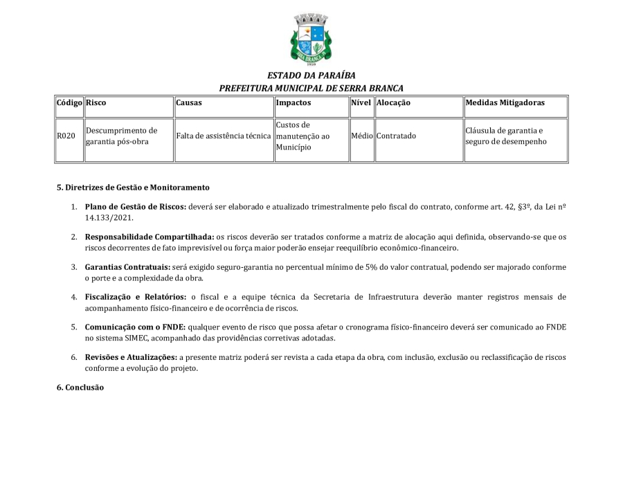 CONCORRÊNCIA ELETRÔNICA Nº 00004/2025 - CONTRATAÇÃO DE EMPRESA ESPCIALIZADA E DO RAMO, PARA CONSTRUÇÃO DE ESCOLA EM TEMPO INTEGRAL NO LOTEAMENTO IDEAL, EM SERRA BRANCA/PB – FNDE ESCOLA DE 13 SALAS, CONFORME PROPOSTA Nº 004012/2024.