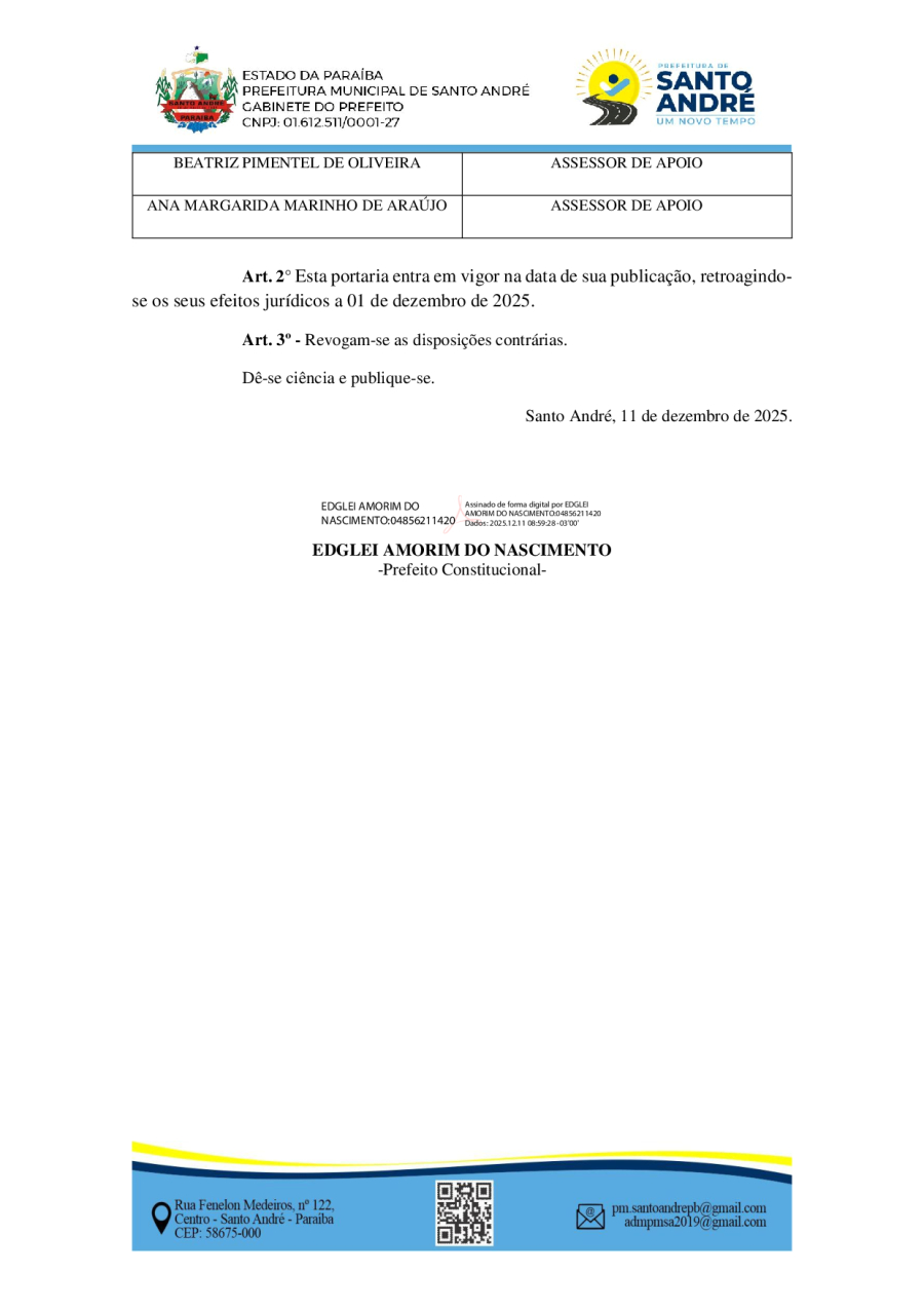 Conforme MP n° 2.200-2 de 24/08/2001, que institui a infraestrutura de chaves Públicas. Matéria Publicada no Diário Oficial do Município de Santo André/PB no dia - Edição 01360.