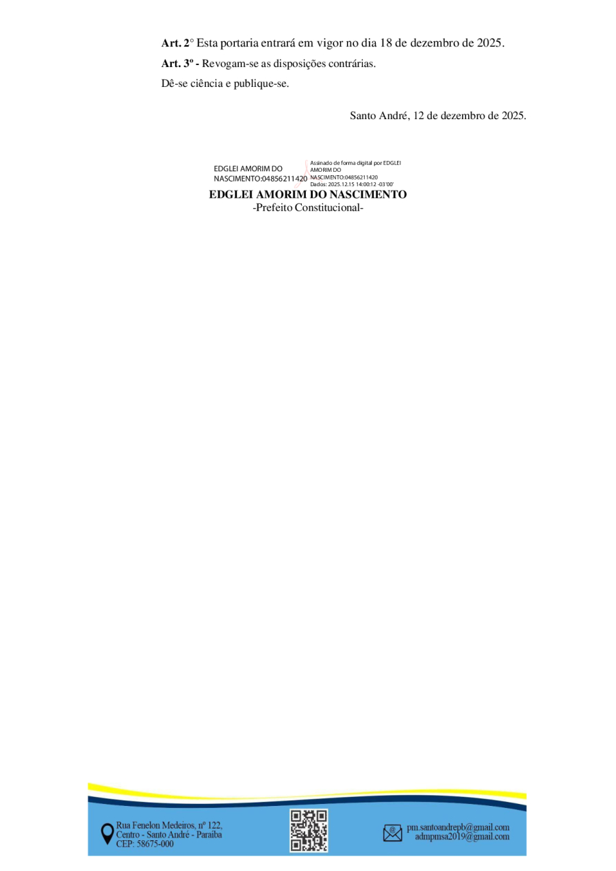 Conforme MP n° 2.200-2 de 24/08/2001, que institui a infraestrutura de chaves Públicas. Matéria Publicada no Diário Oficial do Município de Santo André/PB no dia - Edição 01361.