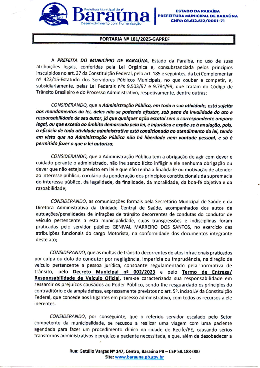 PORTARIA Nº 181/2025-GAPREF - DETERMINAR A INSTAURAÇÃO DE PROCESSO ADMINISTRATIVO DE SINDICÂNCIA. - 16 DE DEZEMBRO DE 2025.