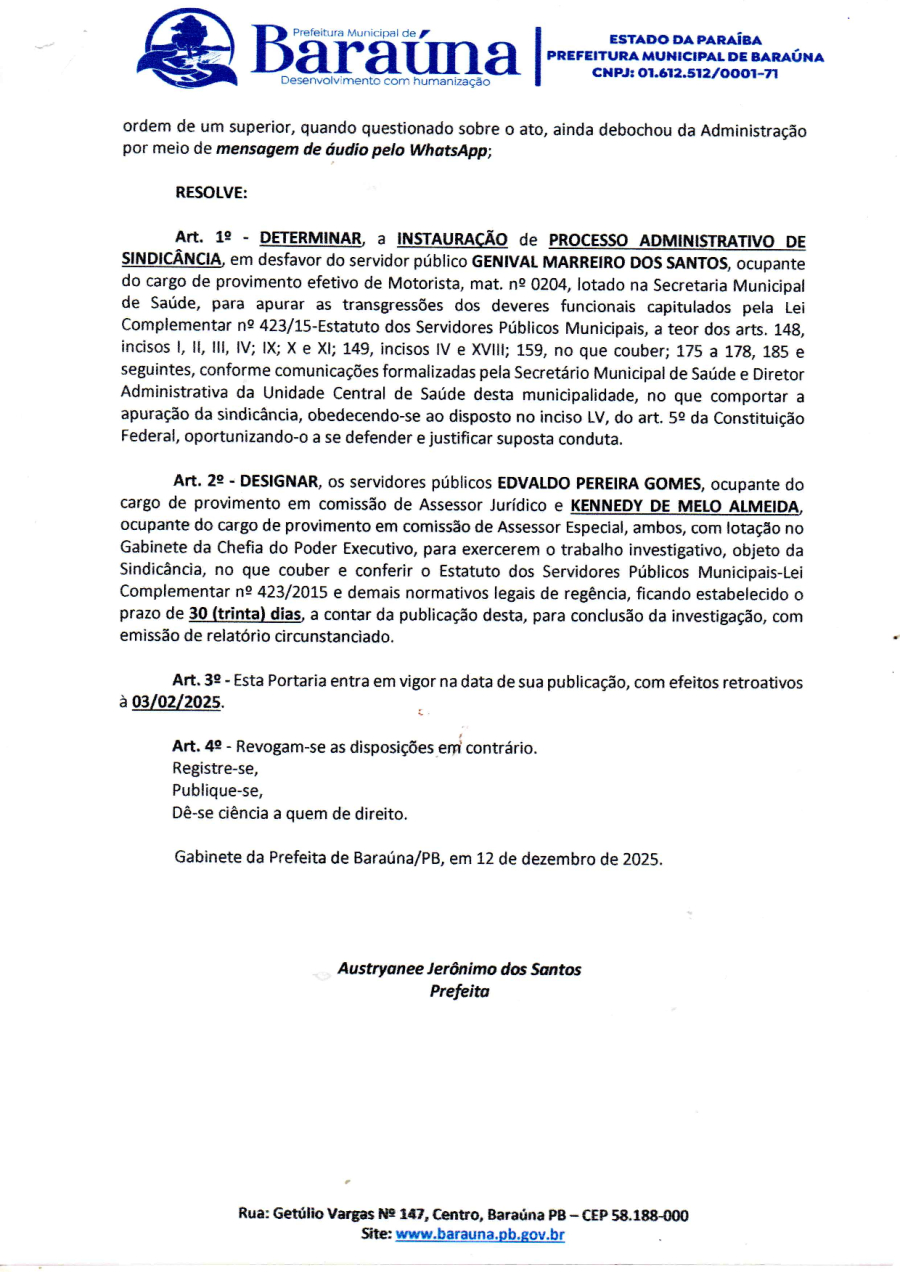Conforme MP n° 2.200-2 de 24/08/2001, que institui a infraestrutura de chaves Públicas. Matéria Publicada no Diário Oficial do Município de Baraúna/PB no dia - Edição 01386.