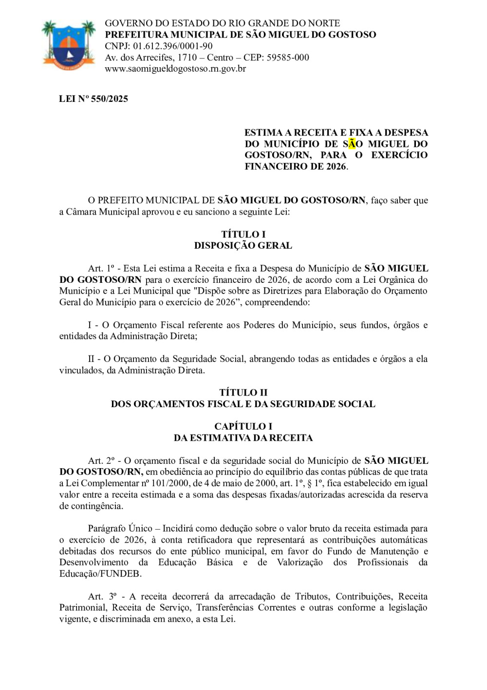 LEI Nº 550/2025 - LOA 2026