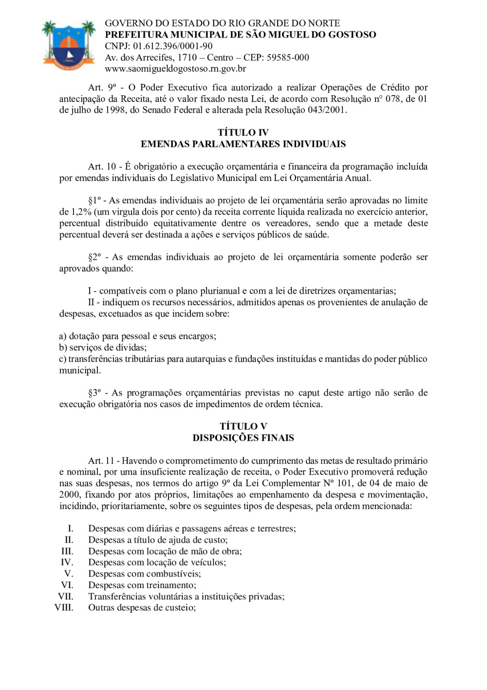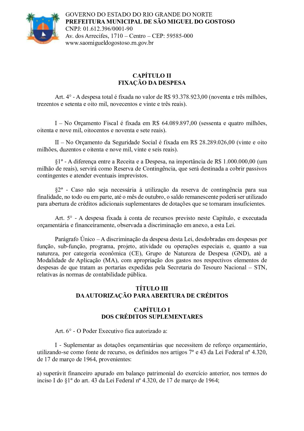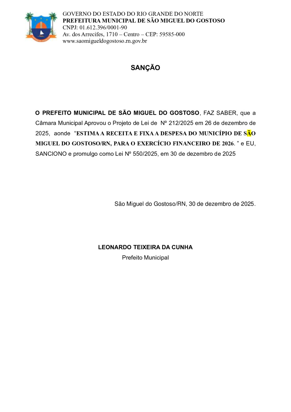 Conforme MP n° 2.200-2 de 24/08/2001, que institui a infraestrutura de chaves Públicas. Matéria Publicada no Diário Oficial do Município de São Miguel do Gostoso/RN no dia - Edição 01234.