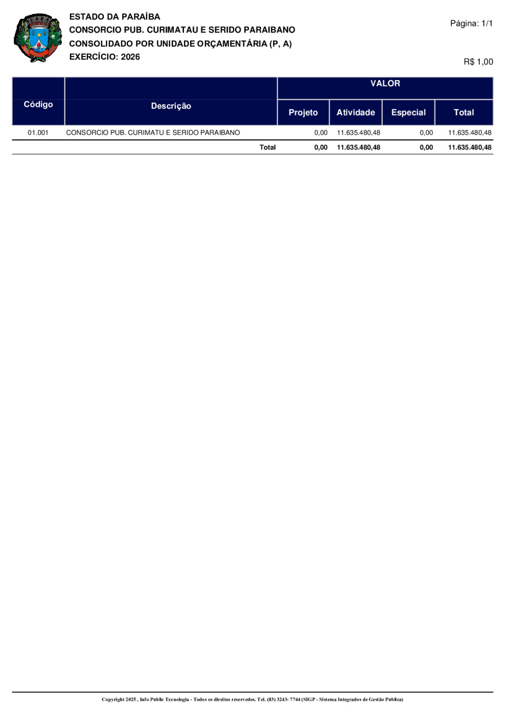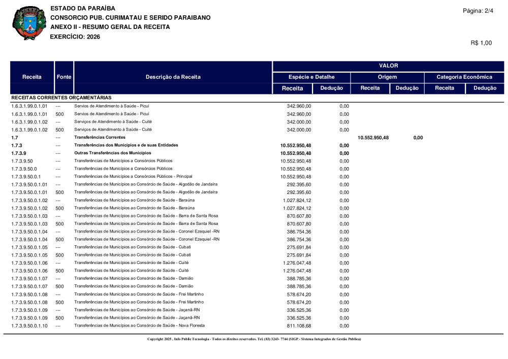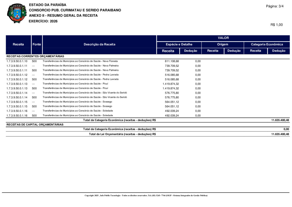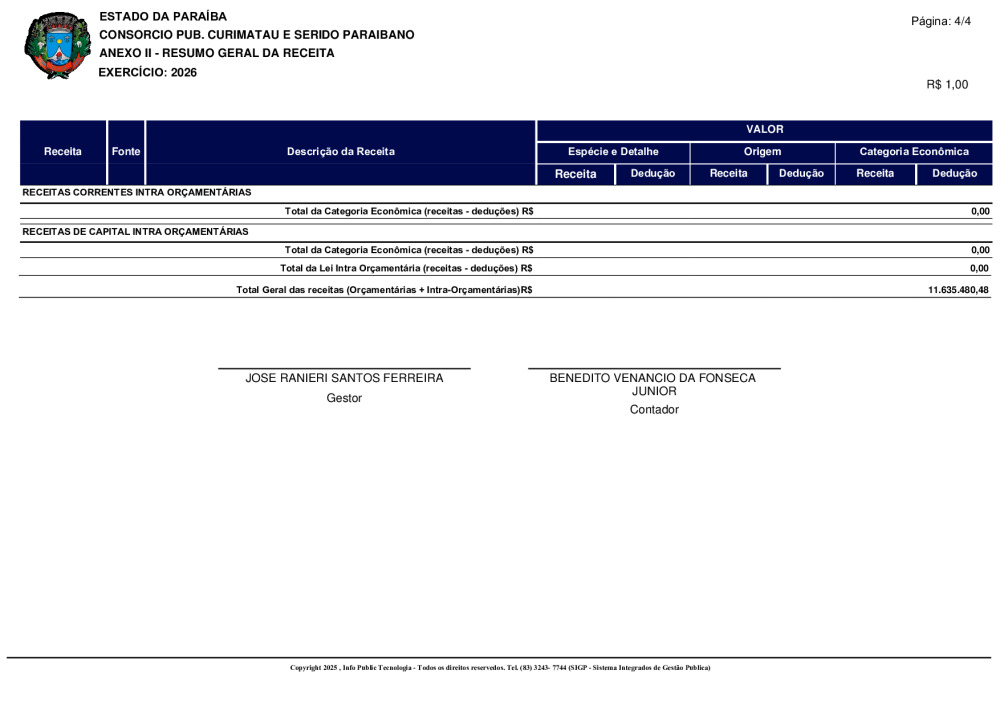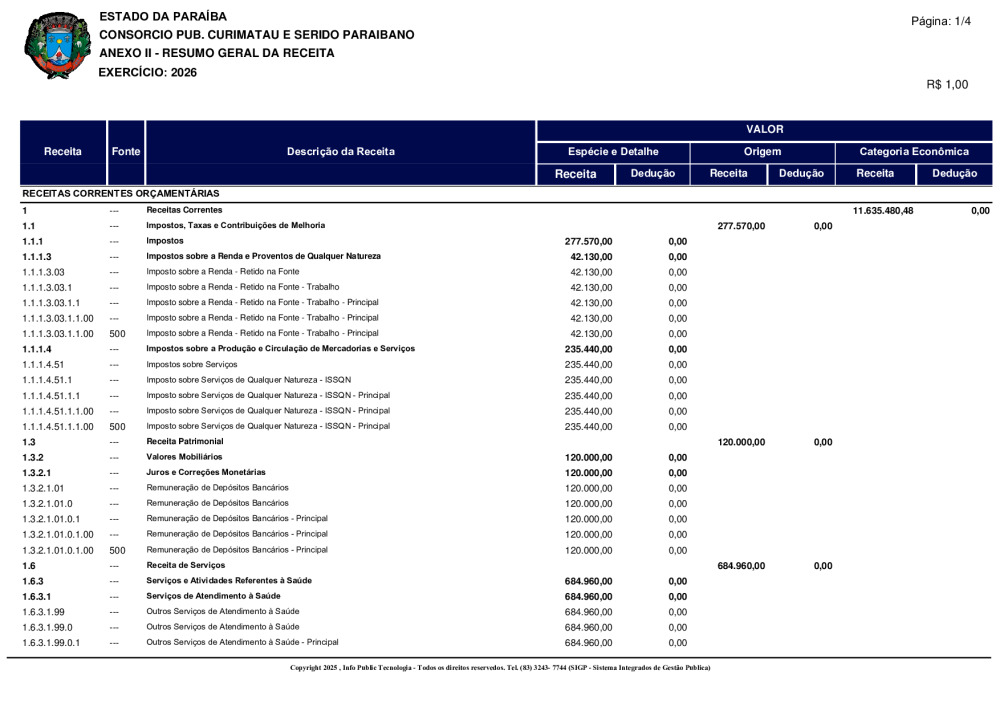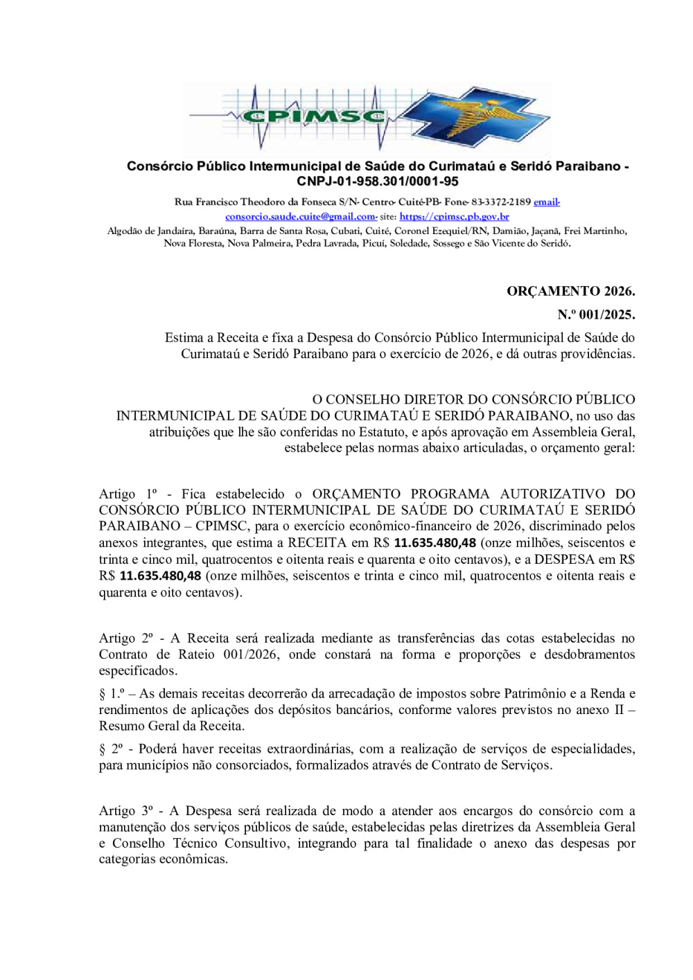 ORÇAMENTO 2026 - N° 0001/2025