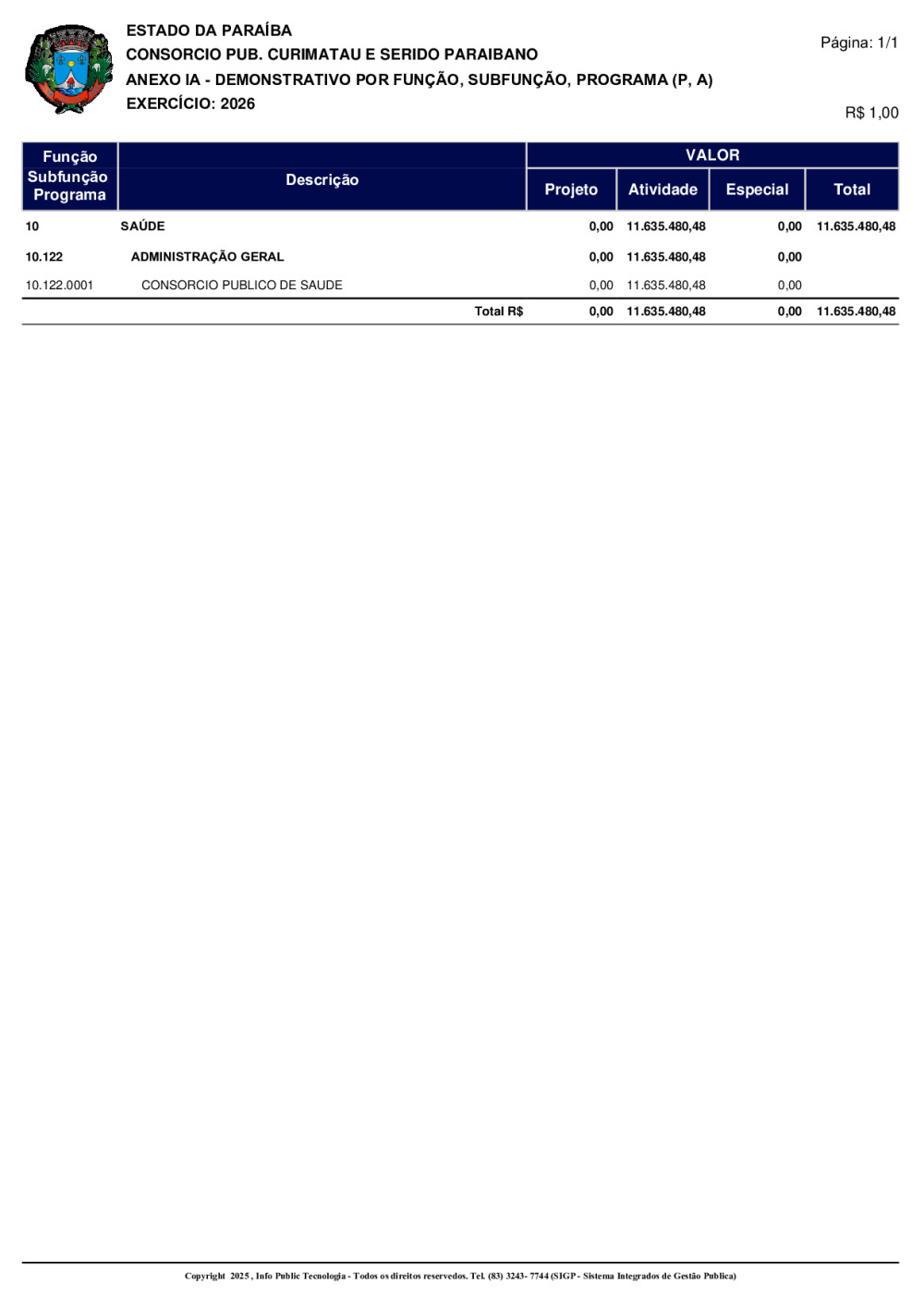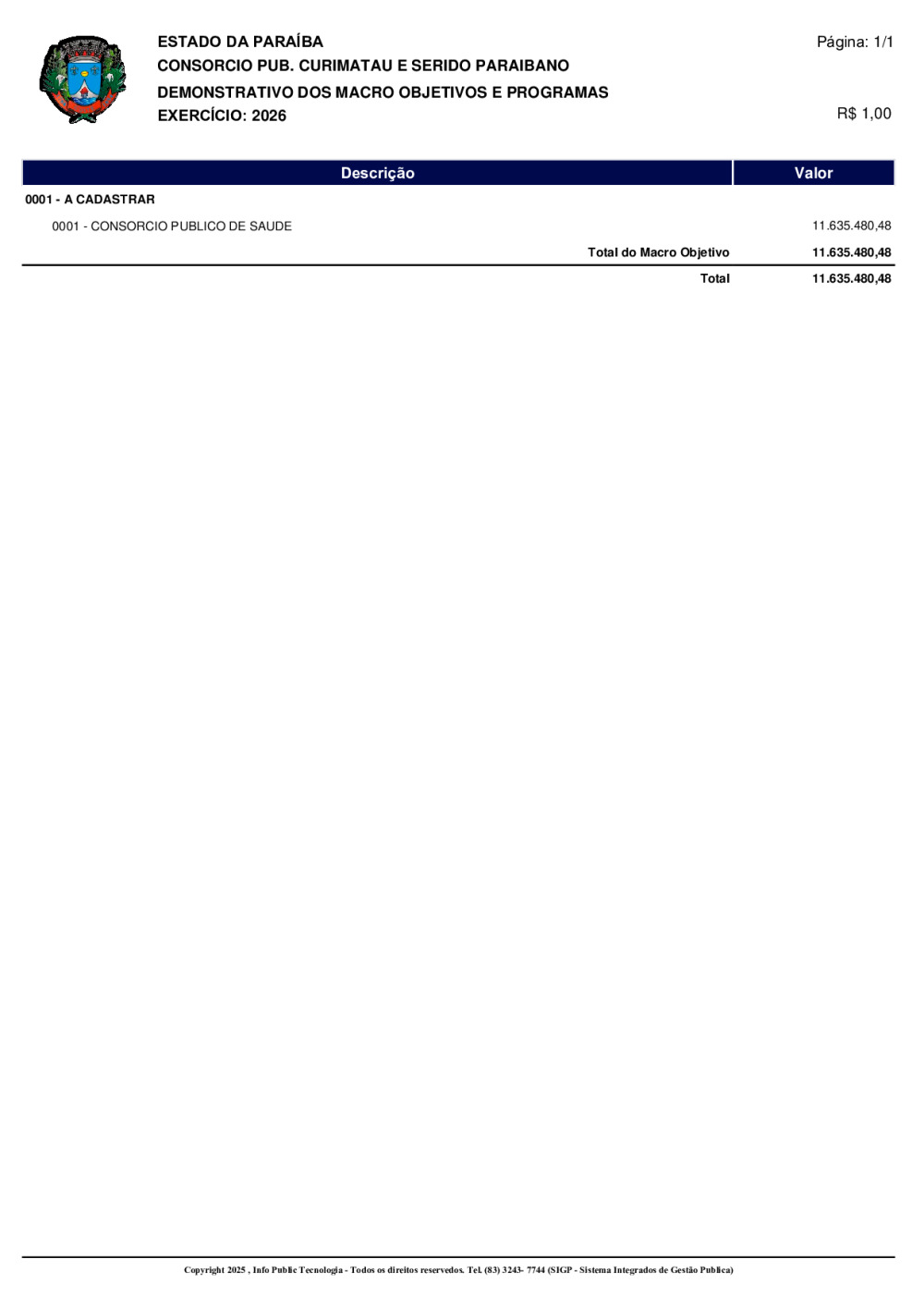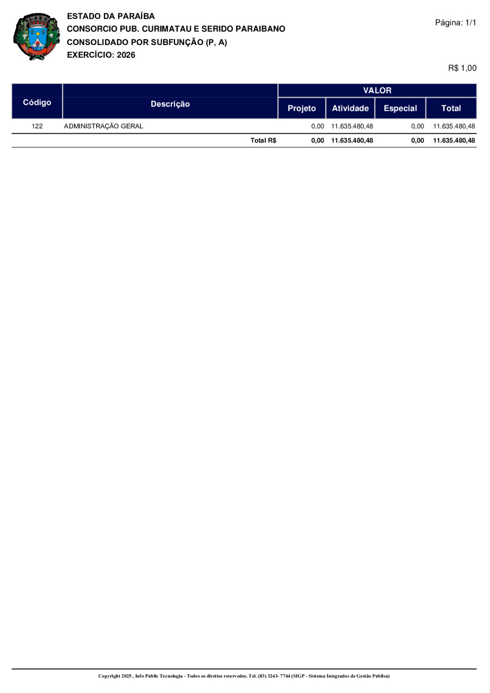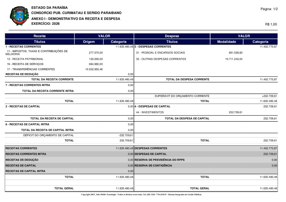 ORÇAMENTO 2026 - N° 0001/2025