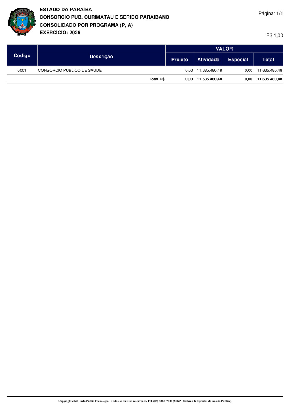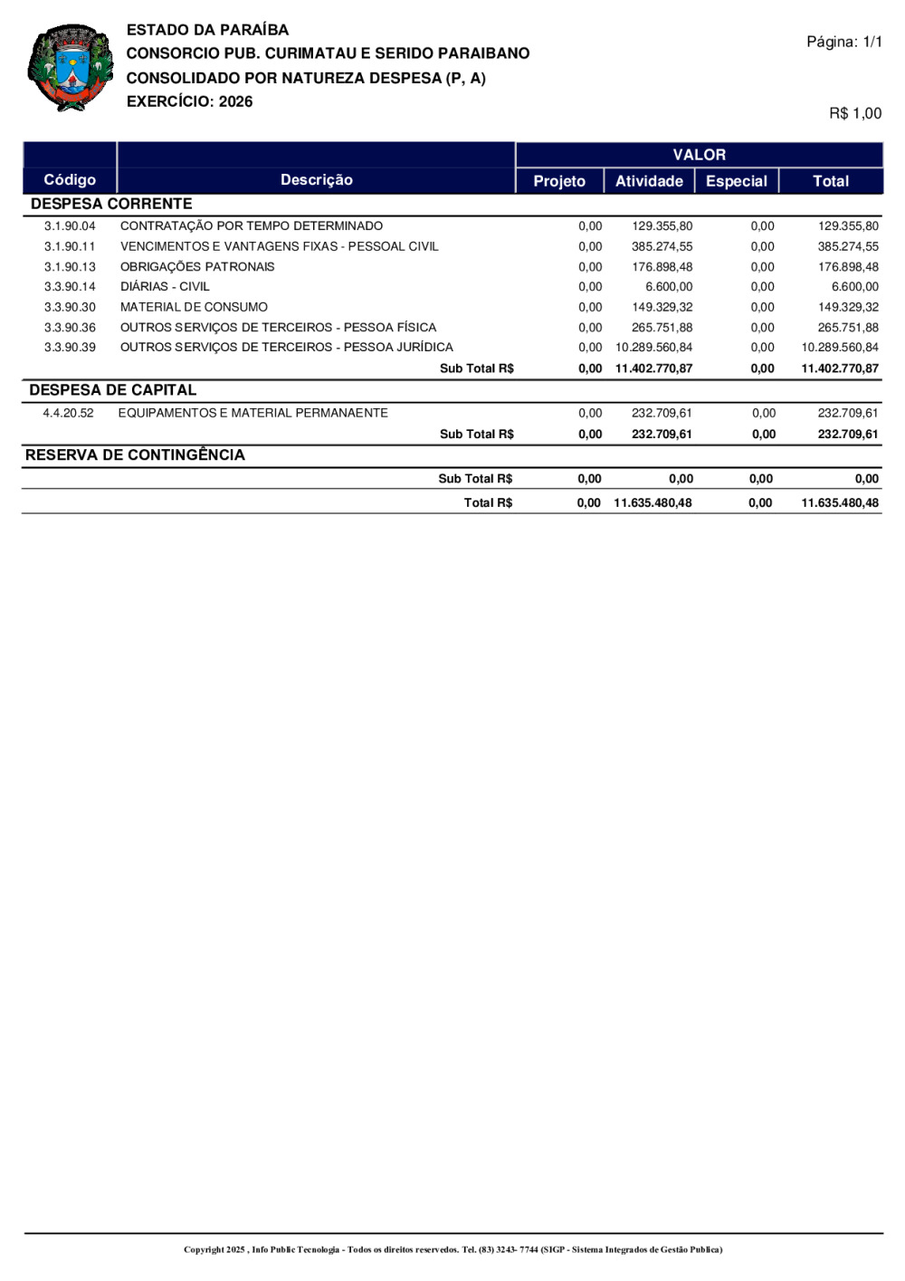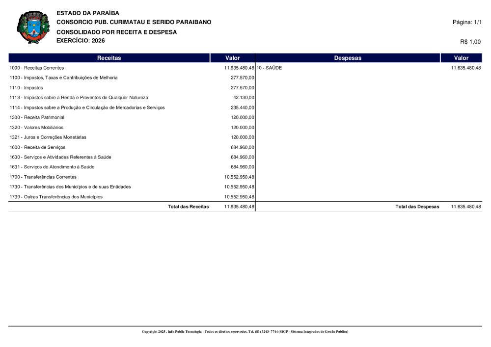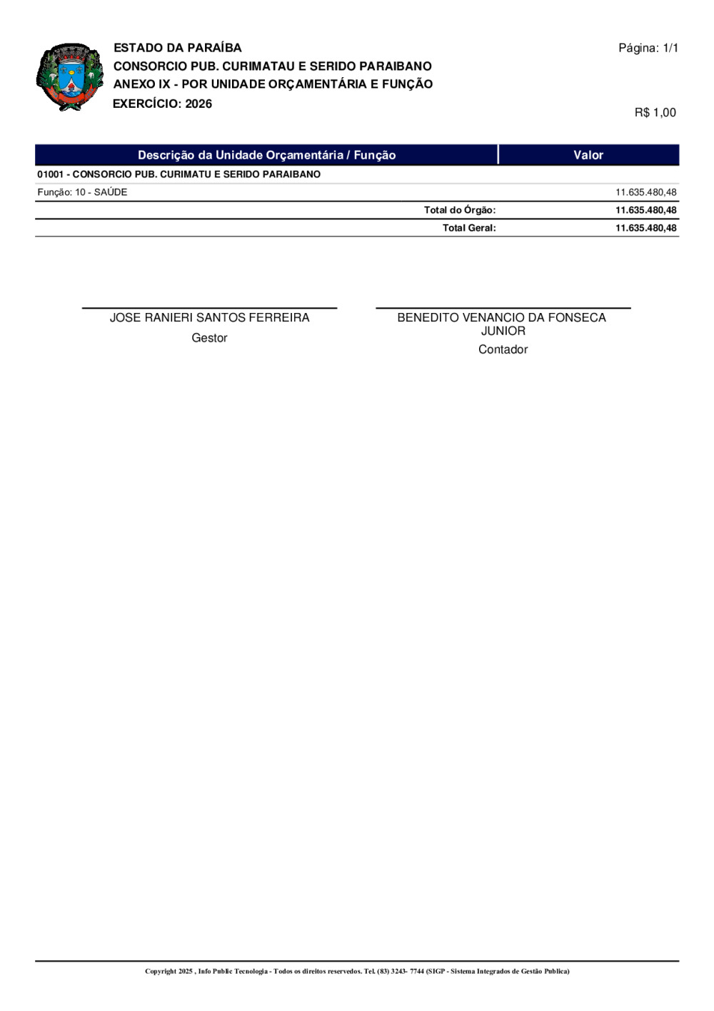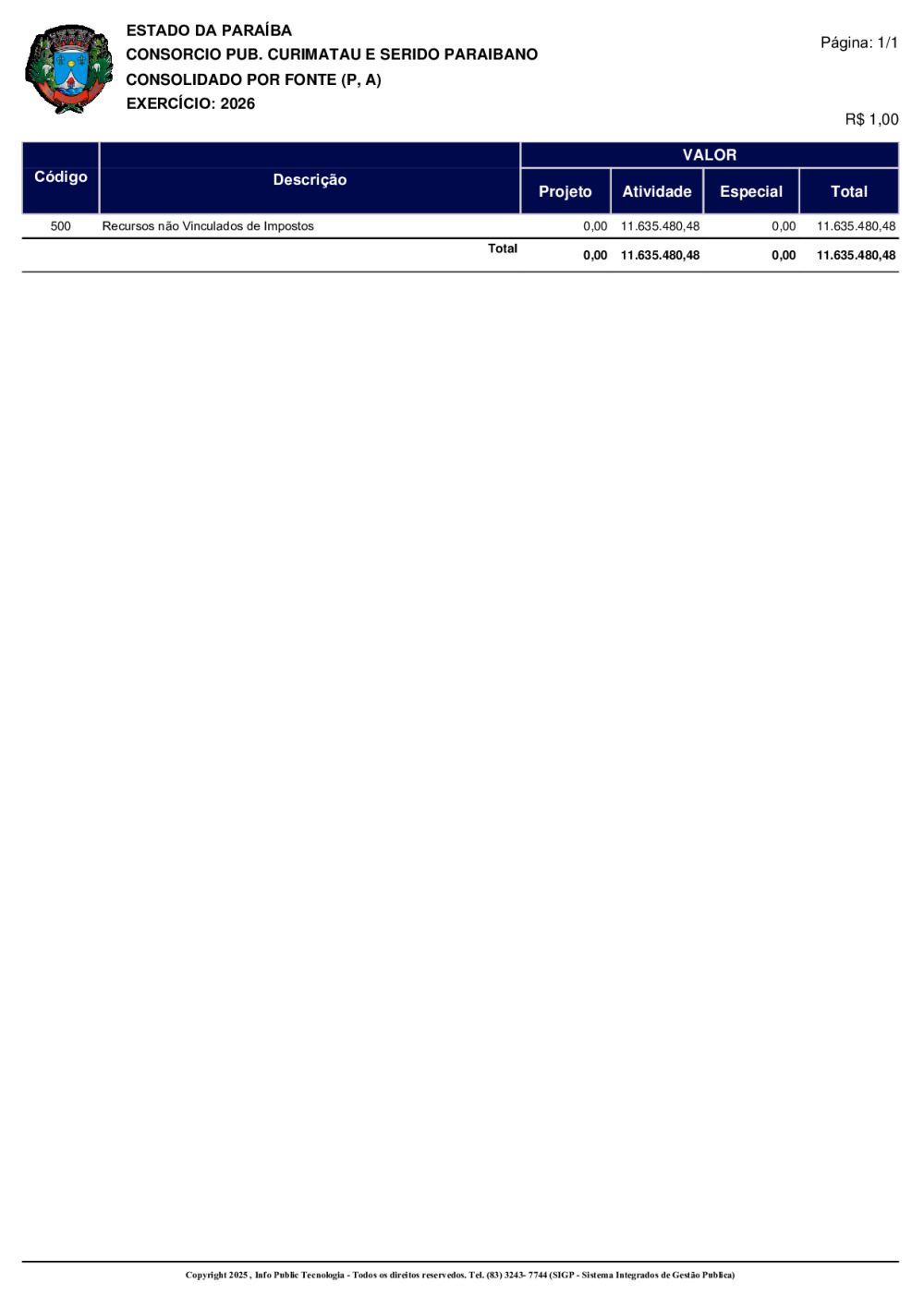 ORÇAMENTO 2026 - N° 0001/2025
