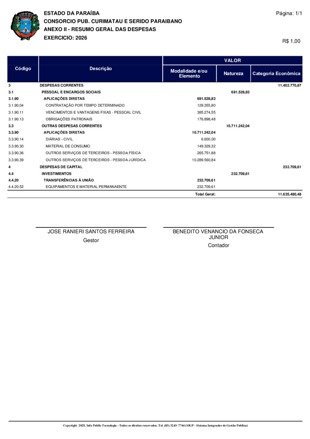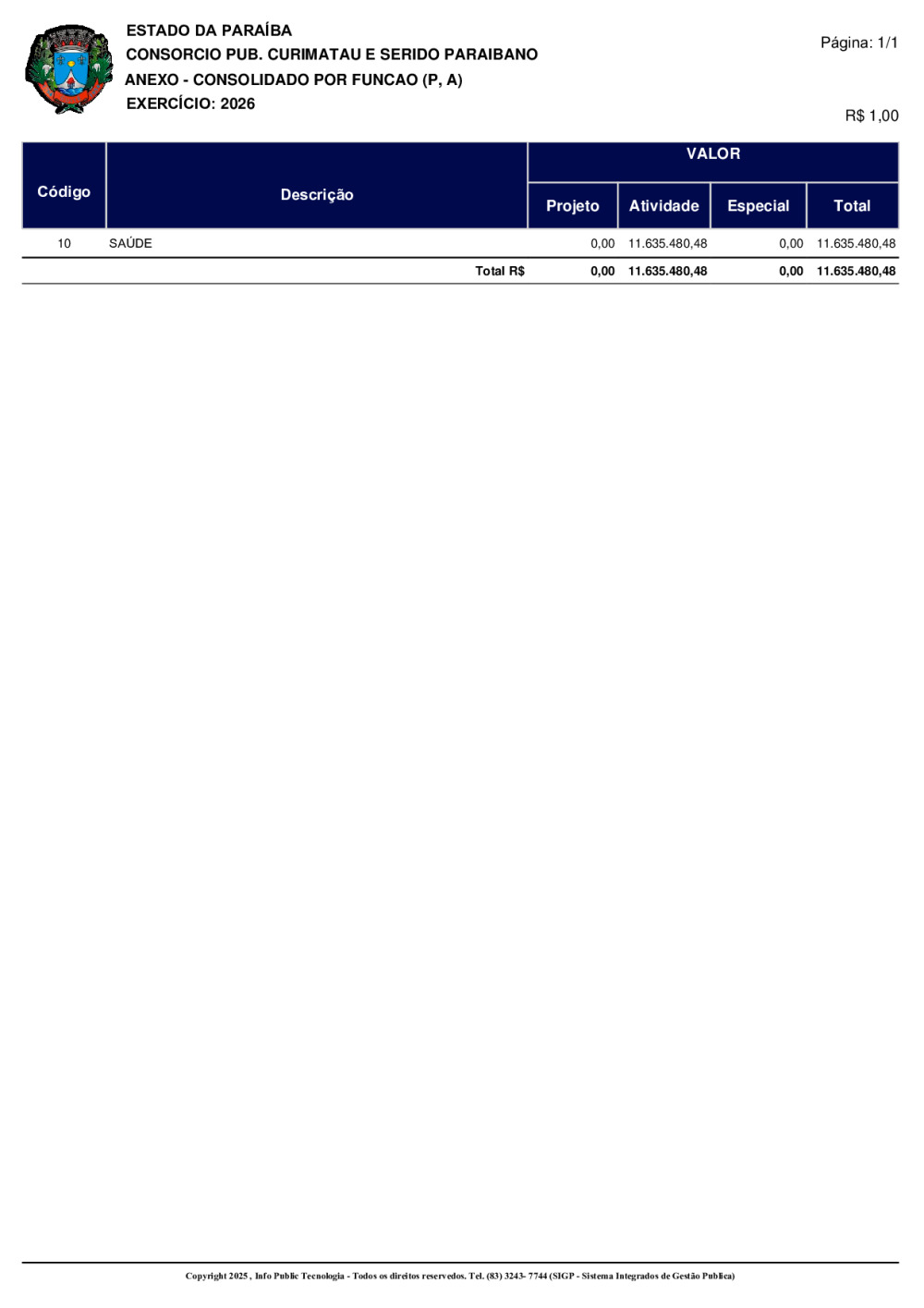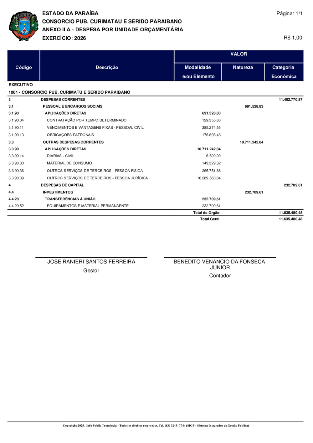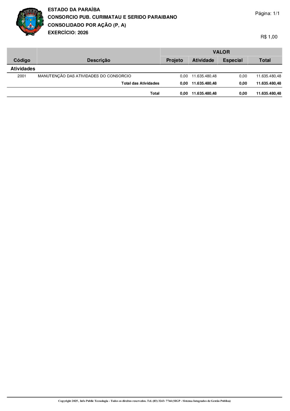 ORÇAMENTO 2026 - N° 0001/2025