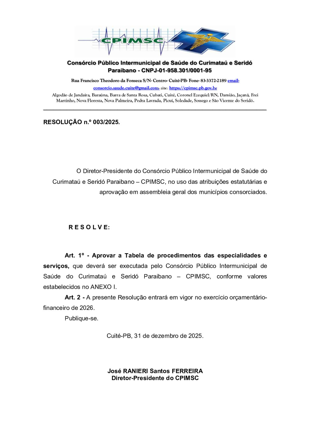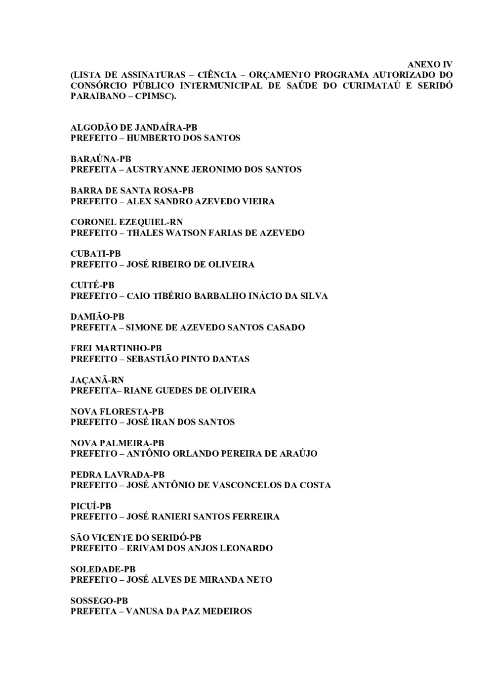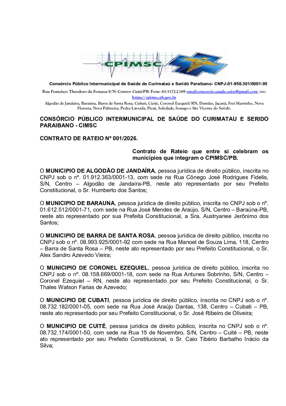 Conforme MP n° 2.200-2 de 24/08/2001, que institui a infraestrutura de chaves Públicas. Matéria Publicada no Diário Oficial do Consórcio Intermunicipal de Saúde do Curimataú e Seridó Paraibano/PB no dia - Edição .