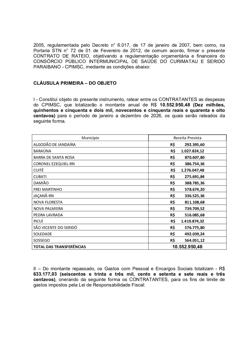 CONTRATO DE RATEIO N° 0001/2026