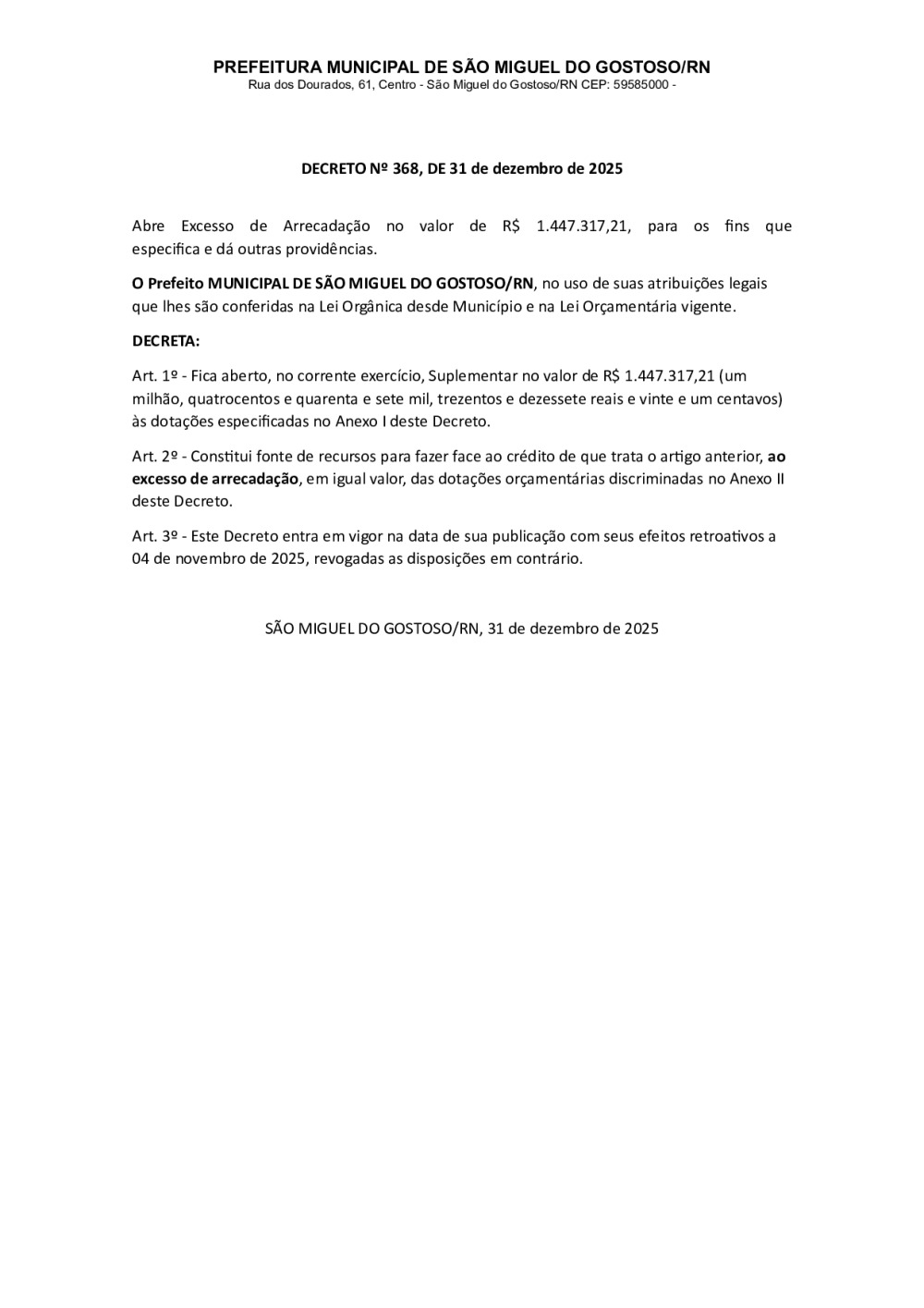 DECRETO EXCESSO DE ARRECADAÇÃO 368