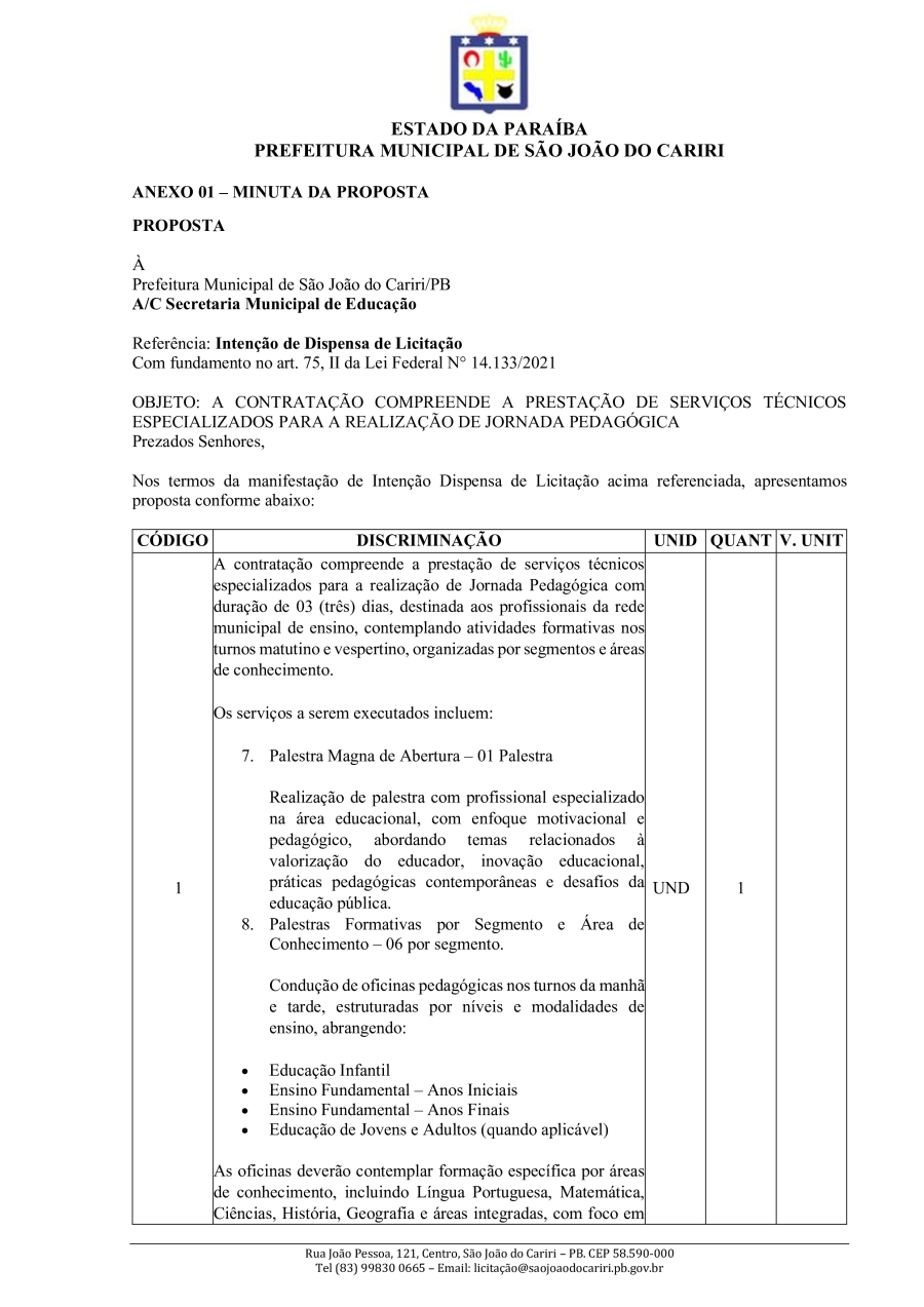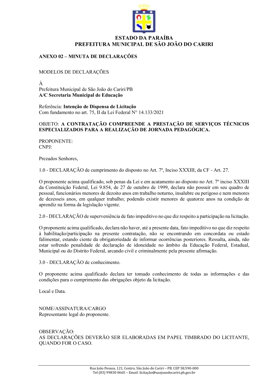 Conforme MP n° 2.200-2 de 24/08/2001, que institui a infraestrutura de chaves Públicas. Matéria Publicada no Diário Oficial do Município de São João do Cariri/PB no dia - Edição 01893.