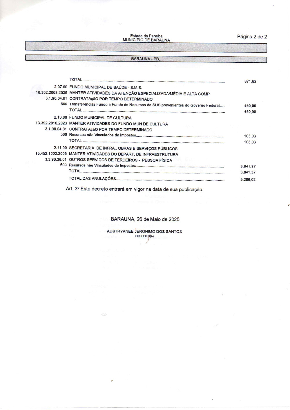 Conforme MP n° 2.200-2 de 24/08/2001, que institui a infraestrutura de chaves Públicas. Matéria Publicada no Diário Oficial do Município de Baraúna/PB no dia - Edição 01398.