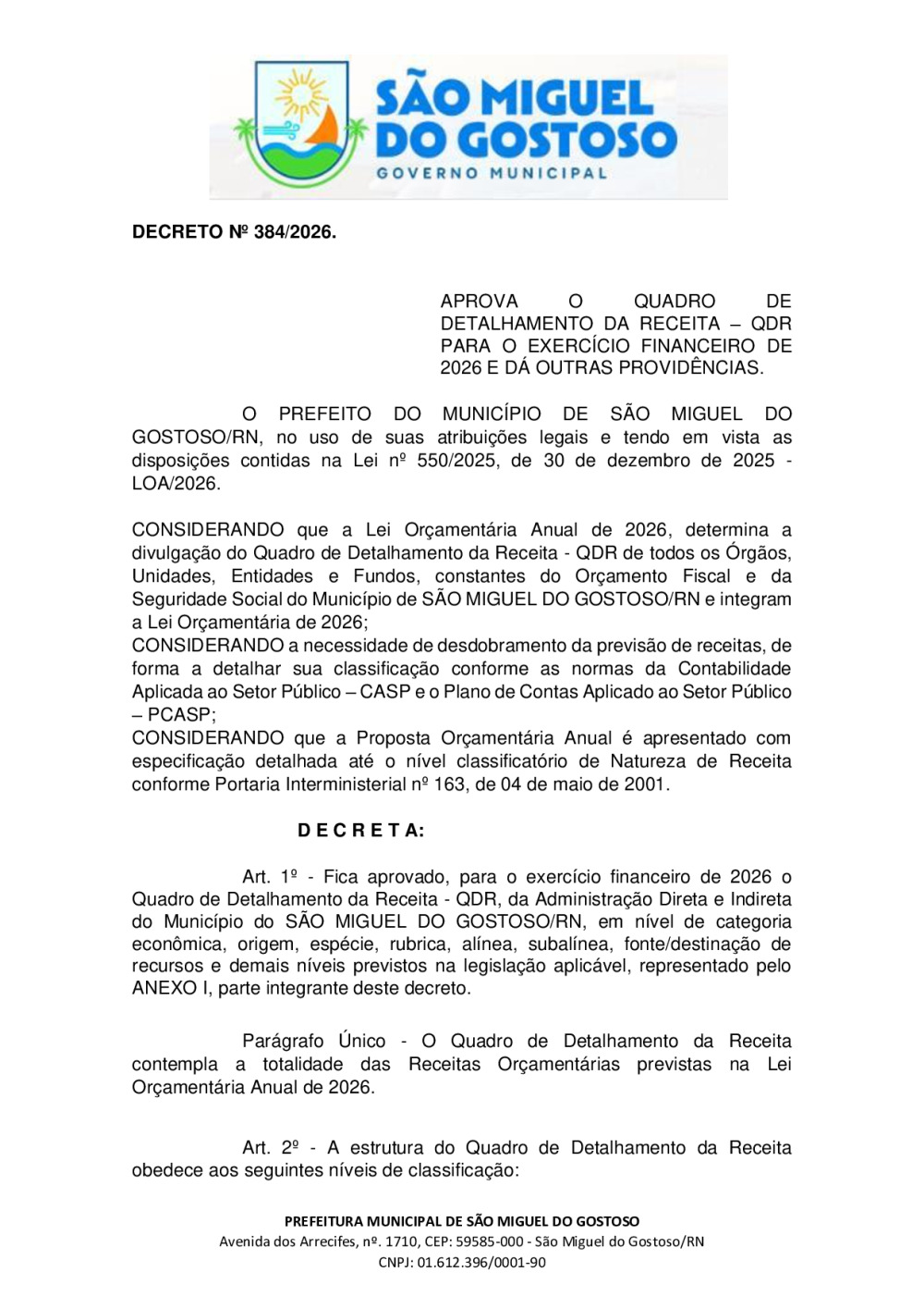 DECRETO Nº 384/2026 - QRD