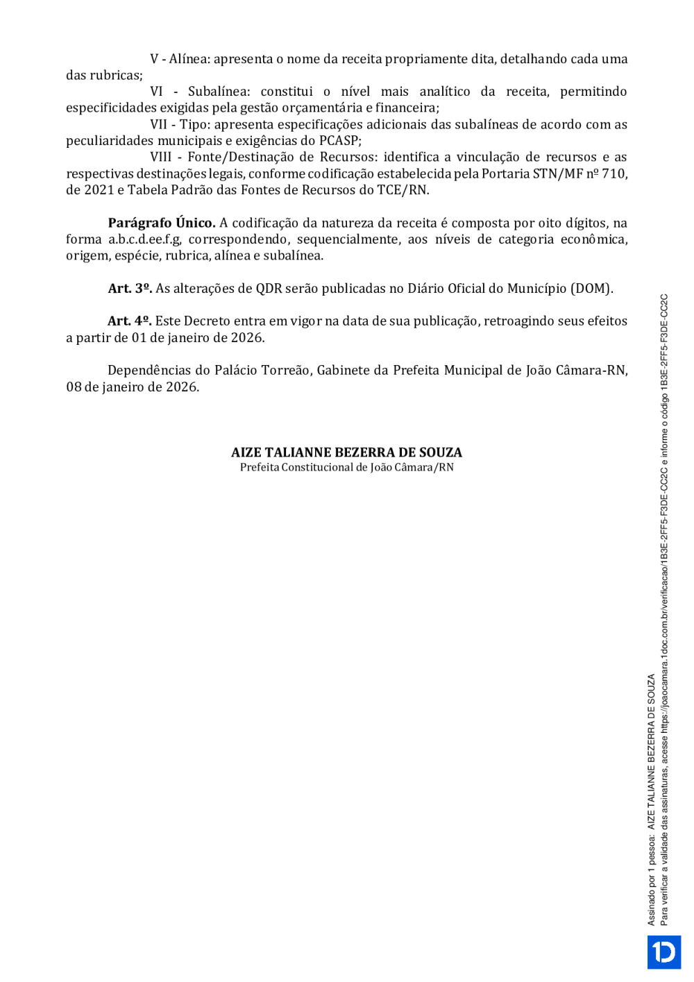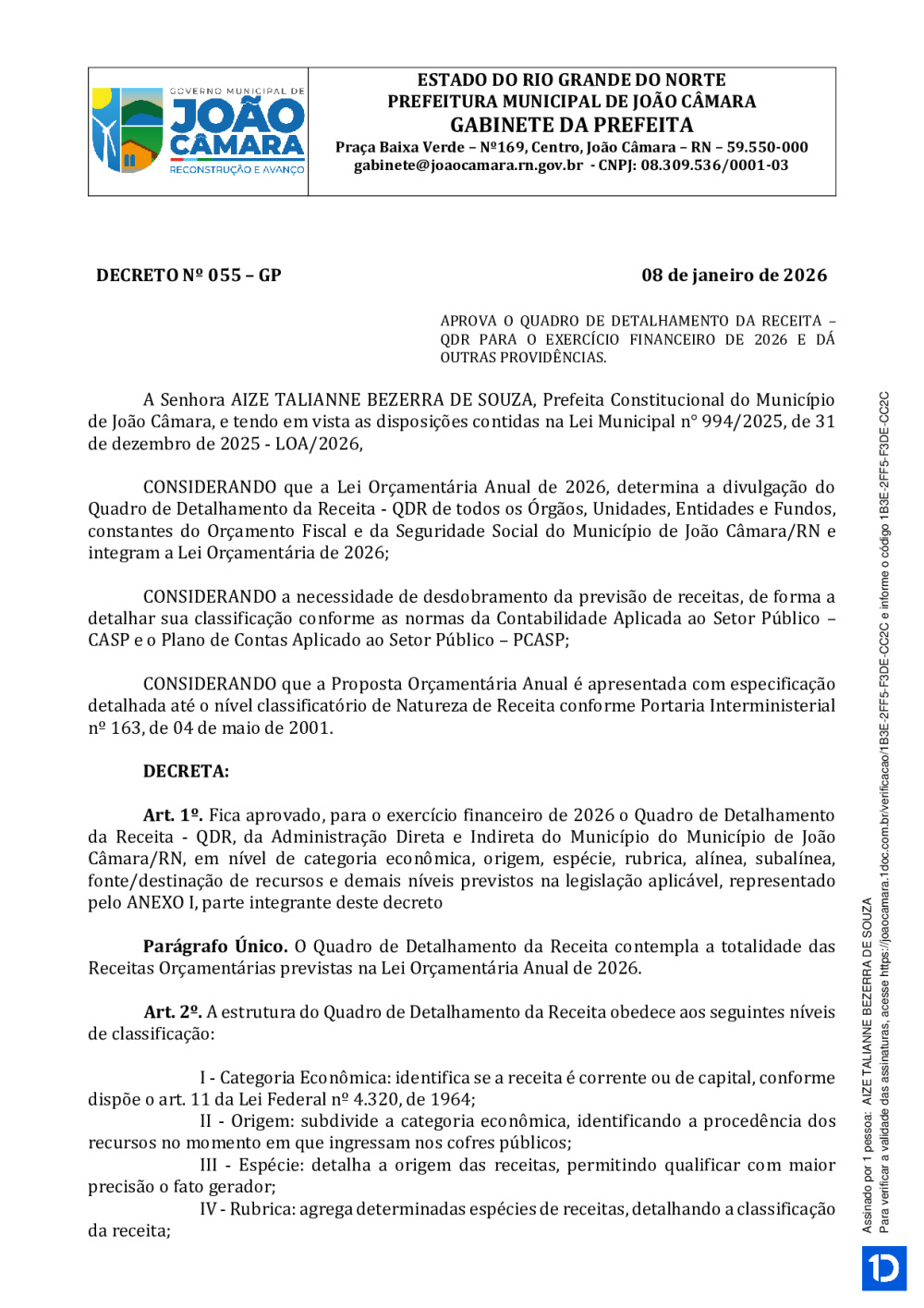 Conforme MP n° 2.200-2 de 24/08/2001, que institui a infraestrutura de chaves Públicas. Matéria Publicada no Diário Oficial do Município de João Câmara/RN no dia - Edição 00202.